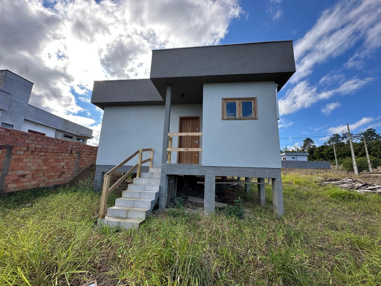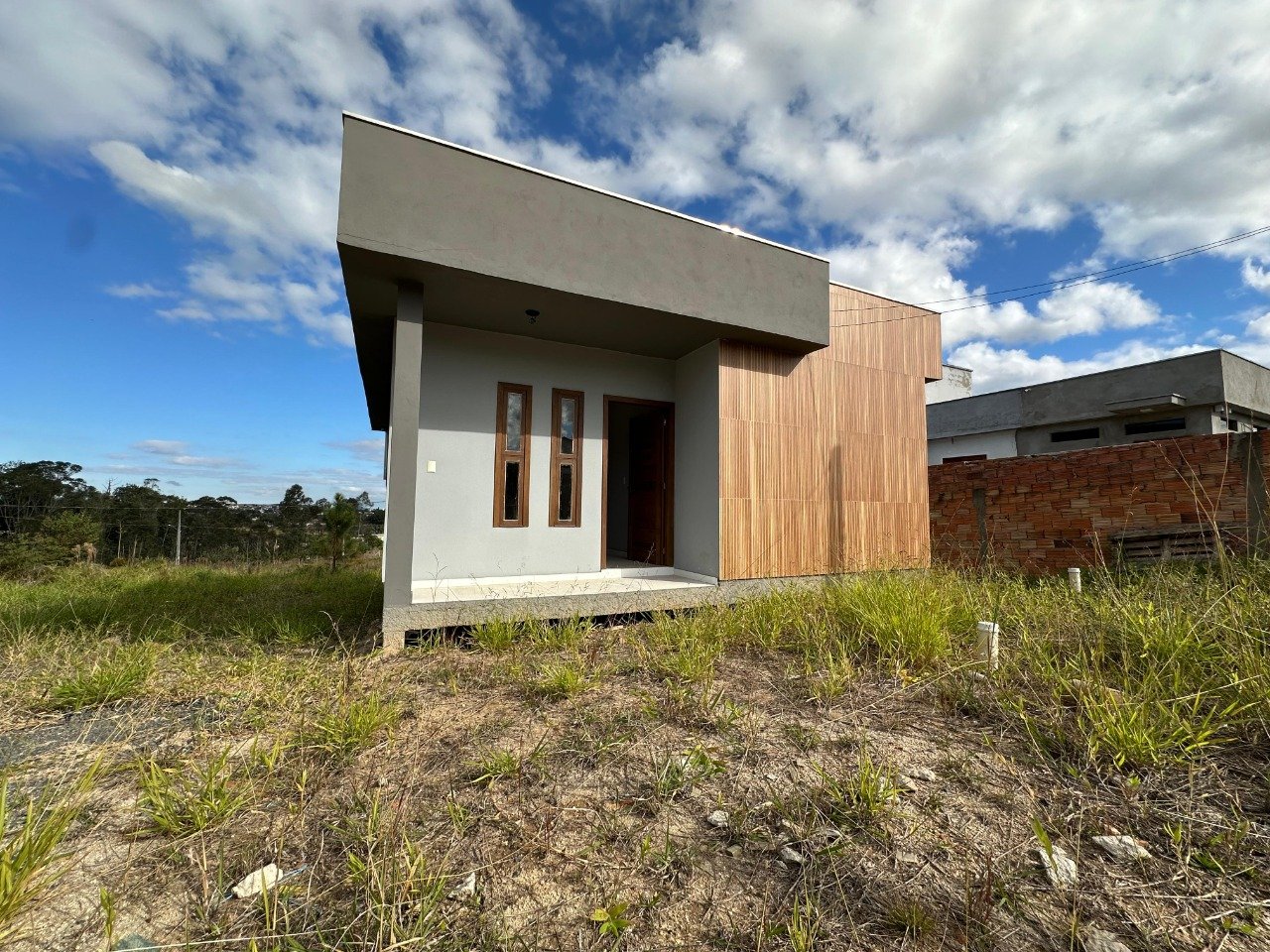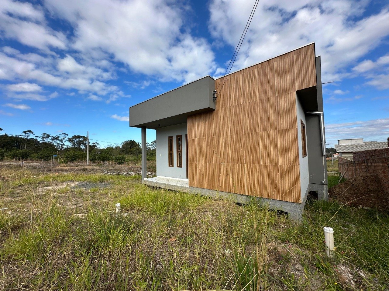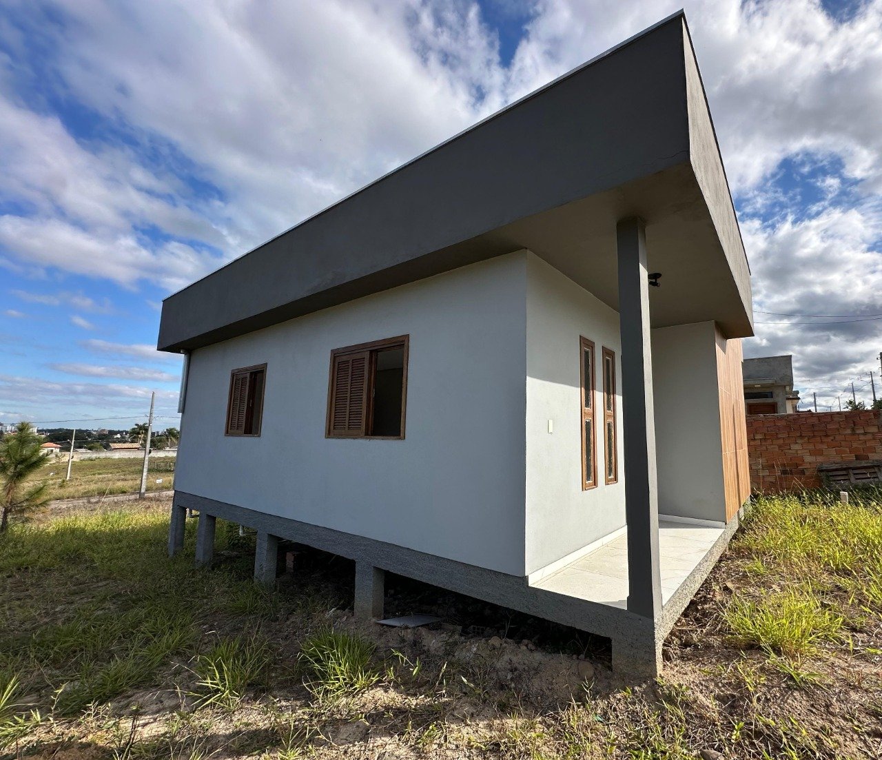 Casa de 59,43m² de área construída contendo: 02 quartos, sala de estar e jantar, banheiro social, cozinha, área de serviço. Casa nova.