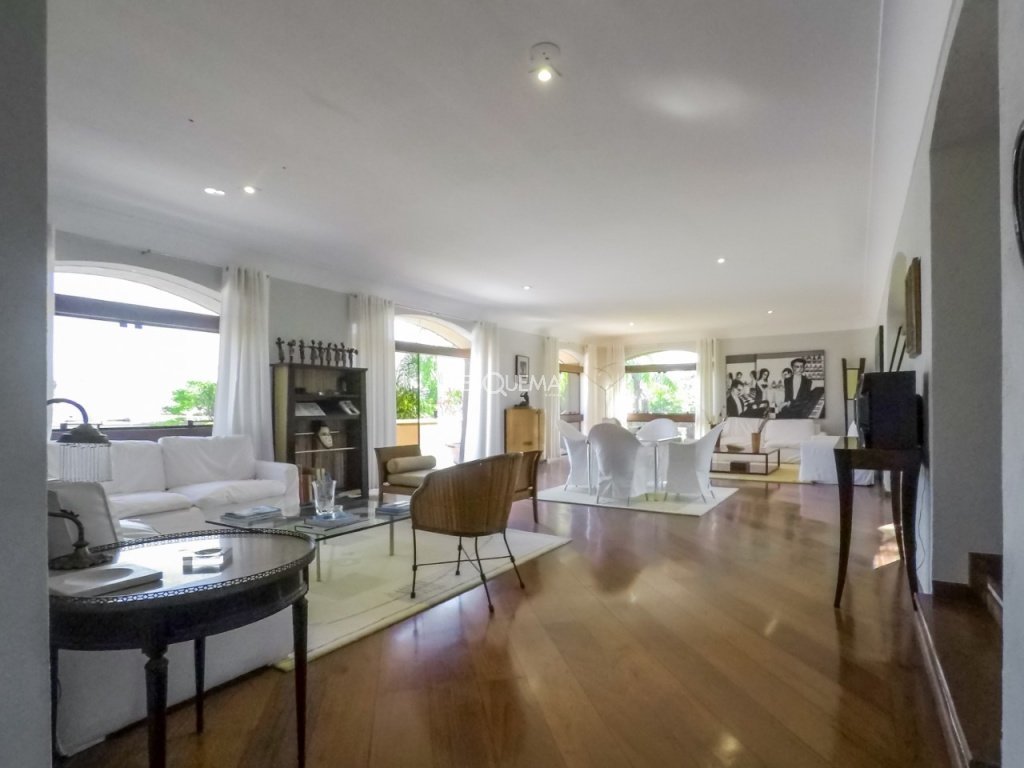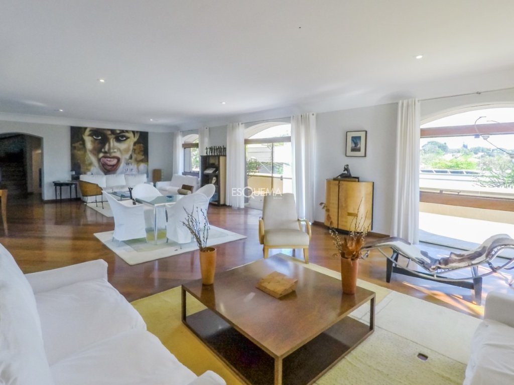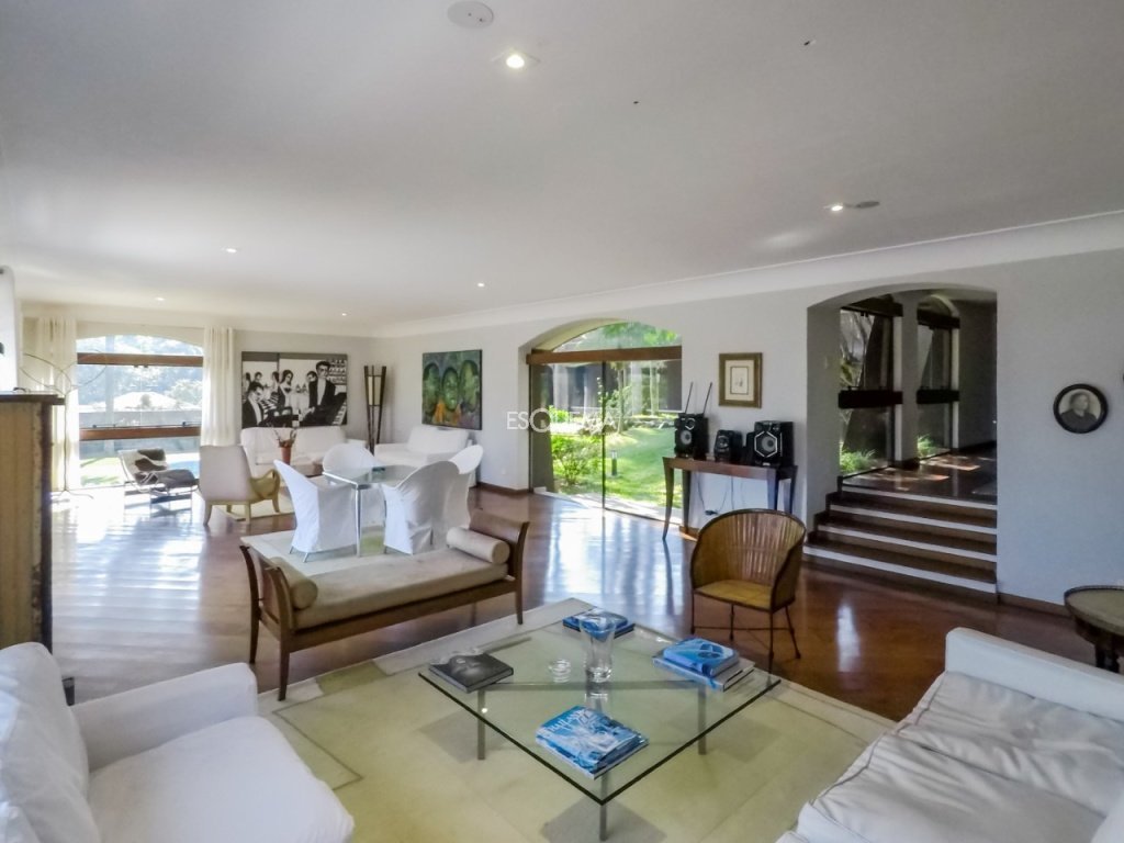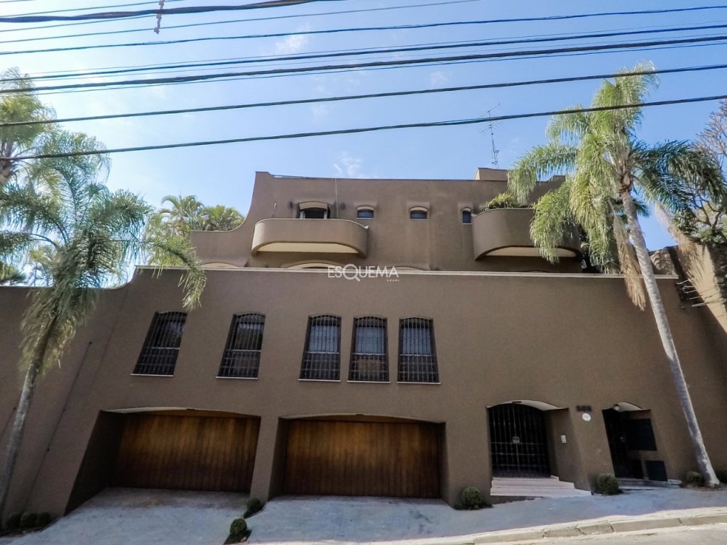 Casa com ambientes amplos, na melhor rua do bairro. Conta com hall social, living espaçoso com lareira e sala de jantar separada, voltados para a varanda. Dispõe de lavabo, escritório, sala de almoço, copa/cozinha e despensa. Na parte superior, são 4 suítes, sendo a principal com grande closet, além de terraço e rouparia. Possui salão com home theater no piso intermediário, lavabo e adega. Na área externa, amplo jardim, piscina, espaço gourmet com churrasqueira, sauna, academia, lavanderia e 4 suítes de funcionários. Garagem para 4 veículos.