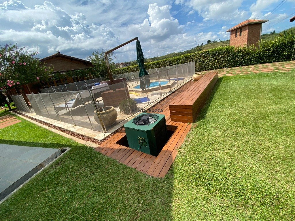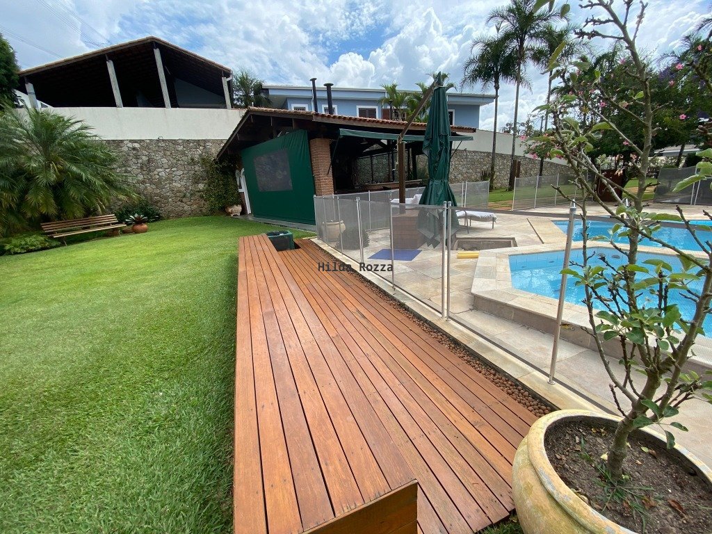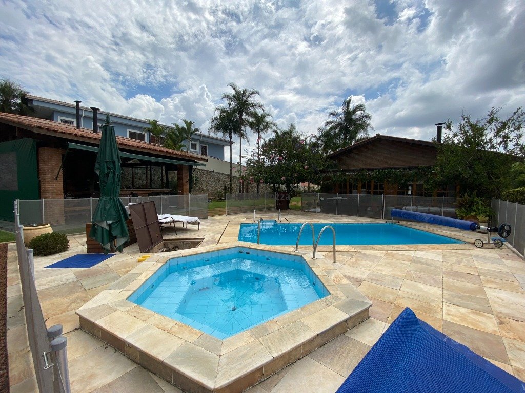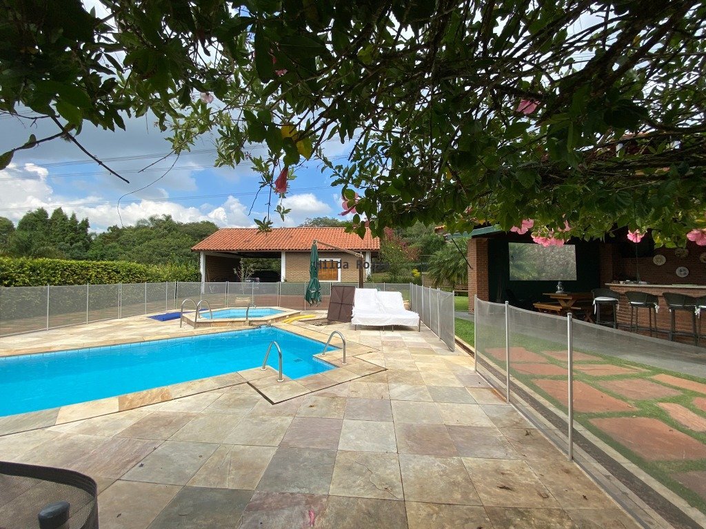 Conforto e segurança que você precisa aqui você encontra. Linda chácara em condomínio fechado. São 1200m² na escritura mais 2500 m² de área verde. A casa, toda renovada, conta com ampla sala com pé direito duplo e forro em madeira, grandes aberturas em vidro e madeira, lareira. Sala de estar, sala de jantar e espaço bar/coffee. Lavabo. Cozinha com armários e equipamentos. Sala de TV que pode virar o quarto dormitório ou escritório. Três amplos dormitórios, com rouparia, banheiro. Suíte master com closet e rouparia. Ala íntima com piso em tábua corrida. Excelentes materiais de acabamento em toda a casa, qualidade e bom gosto. Grande área gourmet, com fechamento de toldos, completa, com balcão em granito, fogão a lenha, forno de pizza, churrasqueira, balcão refrigerado, armários. A piscina, em alvenaria, conta com spa sextavado, aquecimento elétrico, um amplo deck em pedra mineira. Temos ainda garagem coberta, oficina e área de serviço. Canil, horta, campo de futebol, pomar, e um bosque muito bem cuidado. Grandes áreas gramadas e destaques de paisagismo por toda a propriedade. Um imóvel de qualidade, com bom gosto e conforto, para pessoas exigentes que desejam o melhor para sua família. O condomínio muito valorizado, com inúmeras opções de lazer como quadras de tênis, campos de futebol, pista de cooper, playground, lagos, pomar e horta comunitária. Segurança e portaria 24 horas. Sede com piscina adulto e infantil, pizzaria, áreas para festas, tudo muito bem cuidado.