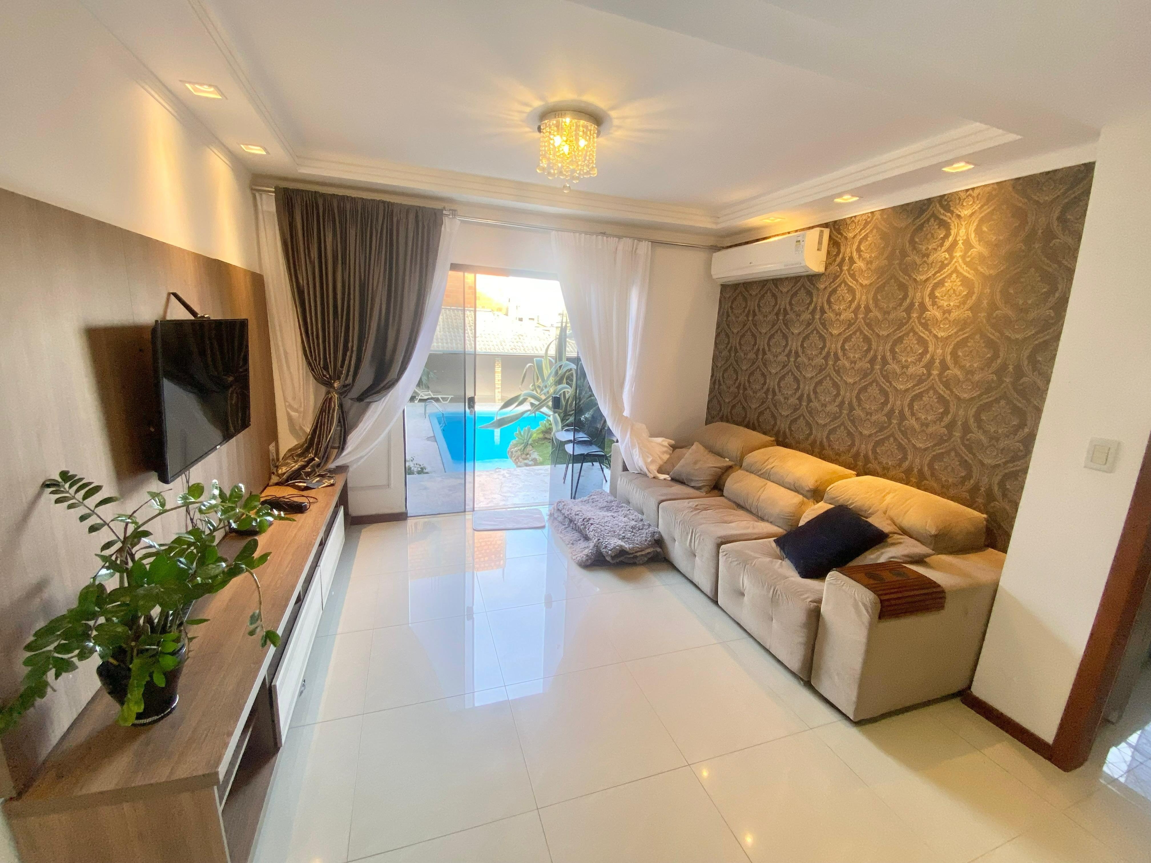 Casa com amplo quintal, piscina e área gourmet com churrasqueira a carvão. Conta com casa do caseiro com suíte, totalizando 300 m² de área e 130 m² de área interna, incluindo 4 quartos, sendo 1 suíte e a suíte do caseiro, além de 2 vagas de garagem cobertas. * A parte de cima da casa é ocupada *