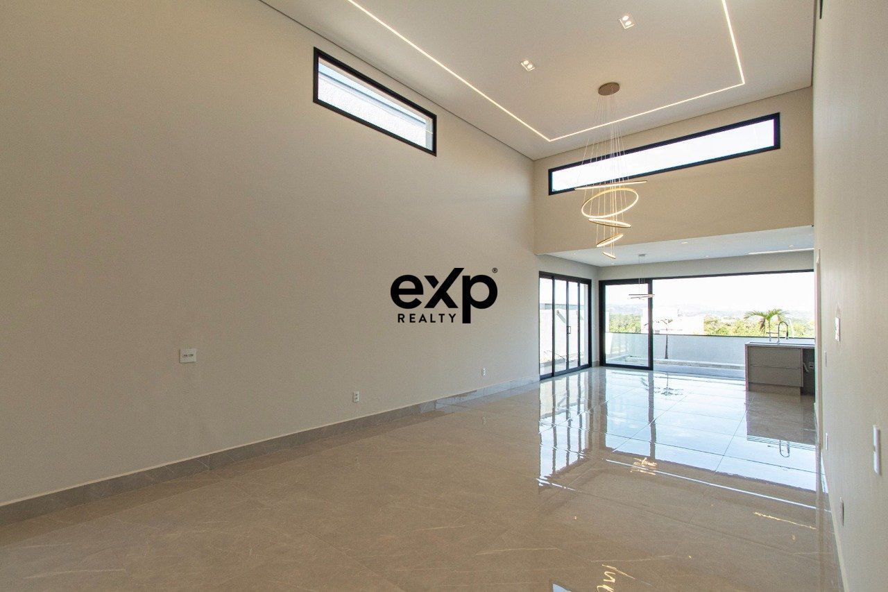 Casa térrea, nova, com 4 suítes com closet (master com hidromassagem) + escritório. 6 banheiros, 6 vagas de garagem. Piscina em mármore travertino. Energia fotovoltaica já instalada e gerando crédito. Infraestrutura de ar condicionado em todos os ambientes. Persianas integradas nas janelas com controle remoto. Telhado metálico. O condomínio conta com toda infraestrutura padrão, toda fiação subterrânea. Salão de festas totalmente equipado. Academia. Brinquedoteca. Mesa de sinuca e pinbolim. Sauna. Quadra de tênis. Quadra poliesportiva. Quadra de beach tênis. Acesso e segurança com reconhecimento facial em todas as áreas de convivência. Parquinho infantil. Piscina com borda infinita. Localização de referência: o condomínio fica a 9 minutos da Prefeitura de Sorocaba. Por estar na beira da rodovia, fácil acesso para a capital, 44 minutos da entrada de São Paulo. Aproximadamente 12 minutos do maior outlet da América do Sul.