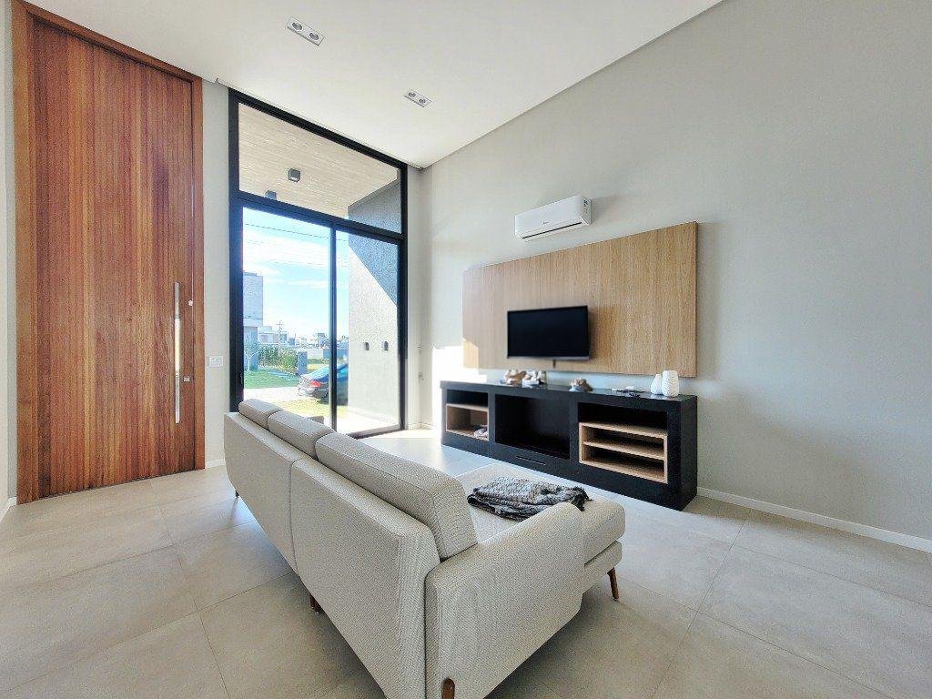 Se você busca por um imóvel completo e pronto para morar, esta casa térrea é a escolha perfeita. Com 4 suítes, sala de estar, sala de jantar, lareira, lavabo e churrasqueira, este imóvel oferece todo o conforto e comodidade que você deseja. Além disso, o condomínio proporciona uma infraestrutura de lazer completa, com piscina, salão de festas, academia, espaço kids, quadra de esportes e muito mais. Com portaria 24h, você e sua família terão total segurança. Mobiliada e decorada, esta casa é ideal para quem busca praticidade e qualidade de vida. Não perca essa oportunidade! Agende sua visita agora mesmo!