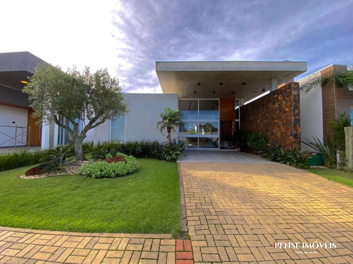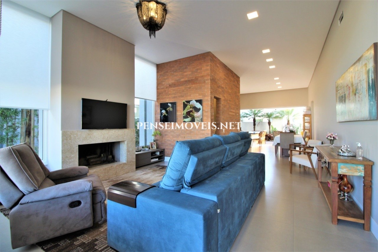 Casa com ótima localização no condomínio, excelente posição solar, bem iluminada e arejada, alto padrão construtivo, porcelanato, esquadrias em PVC, água quente, rebaixo em gesso, pingadeiras e soleiras em granito. Possui 04 suítes sendo 02 americanas, living 02 ambientes com lareira, lavabo, pé direito duplo, cozinha americana com churrasqueira, lavanderia, varanda, abrigo para carros.