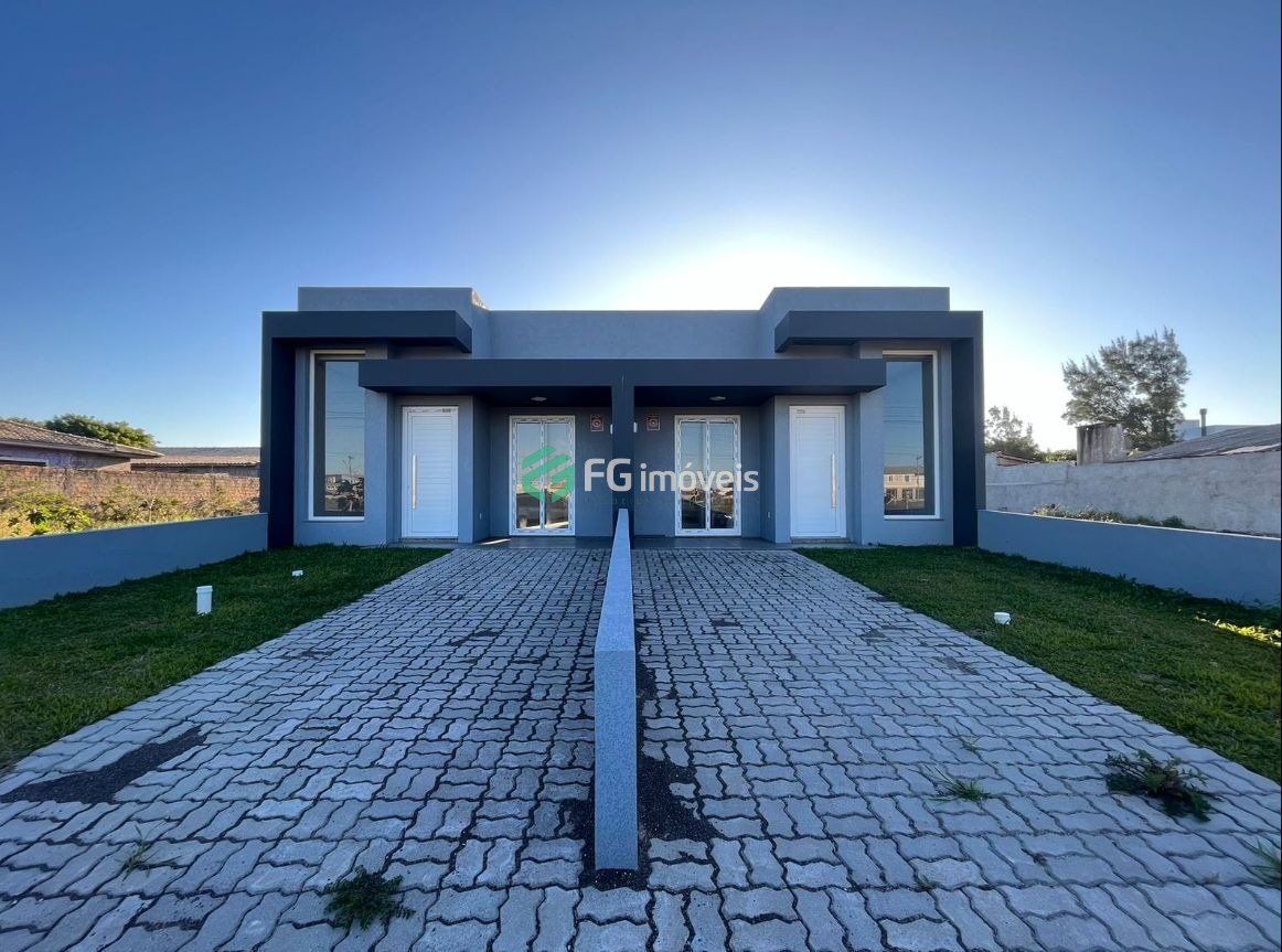 Casa geminada à venda com 100m² de área privativa. Living com 2 ambientes, sala de jantar e estar, lavabo. A cozinha equipada com churrasqueira pronta para colocar os móveis ao seu gosto. Com 2 dormitórios, sendo 1 suíte. Pátio com paisagismo e garagem para 2 carros.