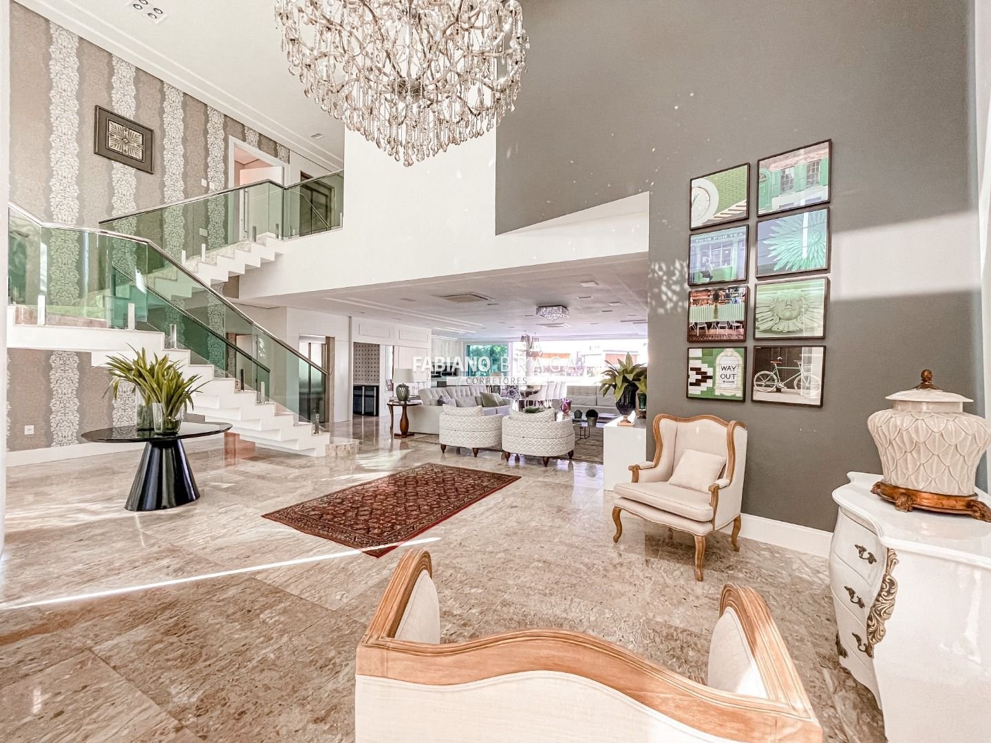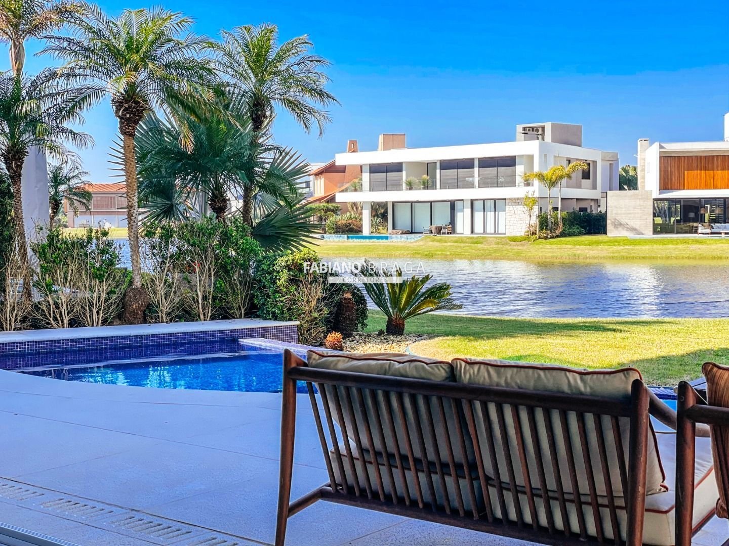 Linda mansão na beira do lago, mobiliada e decorada, composta por 5 amplas suítes sendo 3 com hidro, living e 4 ambientes com lareira, lavabo duplo, elevador, espaço gourmet com churrasqueira, lavanderia, dependência de empregada completa, automação, piso aquecido, piscina aquecida e abrigo para carros.