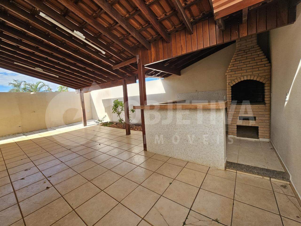 Excelente casa disponível para aluguel com 153m² de área construída, com portão eletrônico, interfone e garagem para três carros. Conta com três salas amplas, sendo de visita, TV e estar/jantar, além de um lavabo e um banheiro social. São três quartos com armários, incluindo uma suíte. Os banheiros possuem espelhos, armários e box. A cozinha é planejada e equipada com armários, e a área de serviço conta com despensa. Lavanderia separada e coberta. Nos fundos, há uma varanda com espaço gourmet aconchegante, churrasqueira a carvão, bancada, quintal.