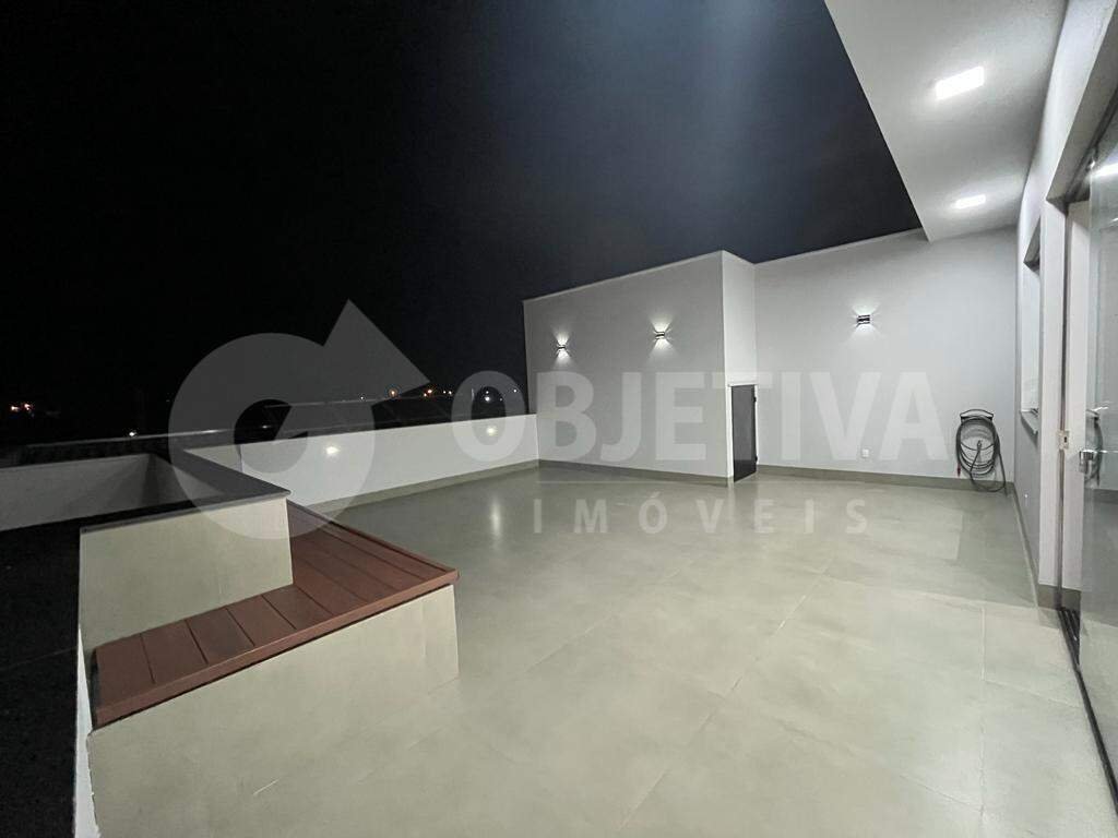 Sobrado de esquina com características mistas residencial e comercial no Bairro Nova Uberlândia. São 438m² de área construída. Possui um comércio que pode ser dividido em dois, com banheiros, instalações elétricas e hidráulicas totalmente separados. 1º Pavimento: Escritório comercial com móveis planejados e acessibilidade já instalada. Na parte residencial, existem 3 quartos, sendo uma suíte máster com closet, banheira, chuveiros e pias duplas, banheiro social, lavabo, sala conjugada com cozinha, lavanderia, área gourmet com cozinha, churrasqueira e lavabo social. A estrutura suporta ofurô com aquecimento. Vista panorâmica da cidade. Possui Habite-se. O imóvel possui toda a infraestrutura de ar condicionado. Todo o imóvel em porcelanato. Escadas em granito branco siena. Bancadas em Preto São Gabriel. Aquecedor solar no apartamento. Sistema de monitoramento e alarme. Terreno de 250m².