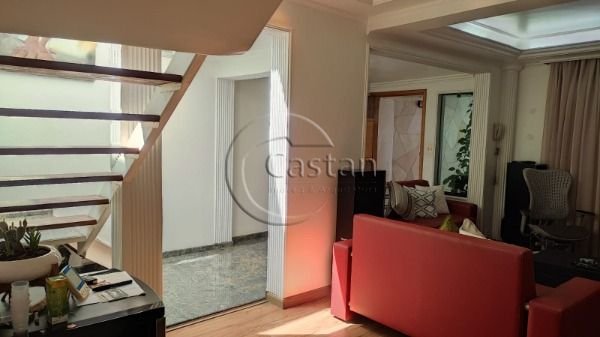 Sobrado em Vila com área construída 260m², terreno 5,60m de frente e 20m de fundo. Esquina com o monotrilho Oratório. Fácil acesso ao metrô V. Prudente, Av. Anhaia Mello e Av. Salim Farah Maluf. Vila contém quadra, churrasqueira e área jardinada de descanso agradável com bancos. Portaria 24 horas com segurança. Sobrado com sala com iluminação natural, sanca e fino acabamento, piso sendo parte em mármore e parte laminado. Lavabo, cozinha ampla para 2 ambientes com armários planejados, lavanderia, quintal, 2 quartos sendo 1 suíte master com quarto bem amplo contendo closet, varanda e banheiro reformado, 1 quarto bem amplo, tendo a possibilidade de dividir em 2. No 3º andar consta uma área multiuso, estruturada para se tornar um quarto, pois contém closet e banheiro com varanda ampla. 2 vagas de garagem coberta.