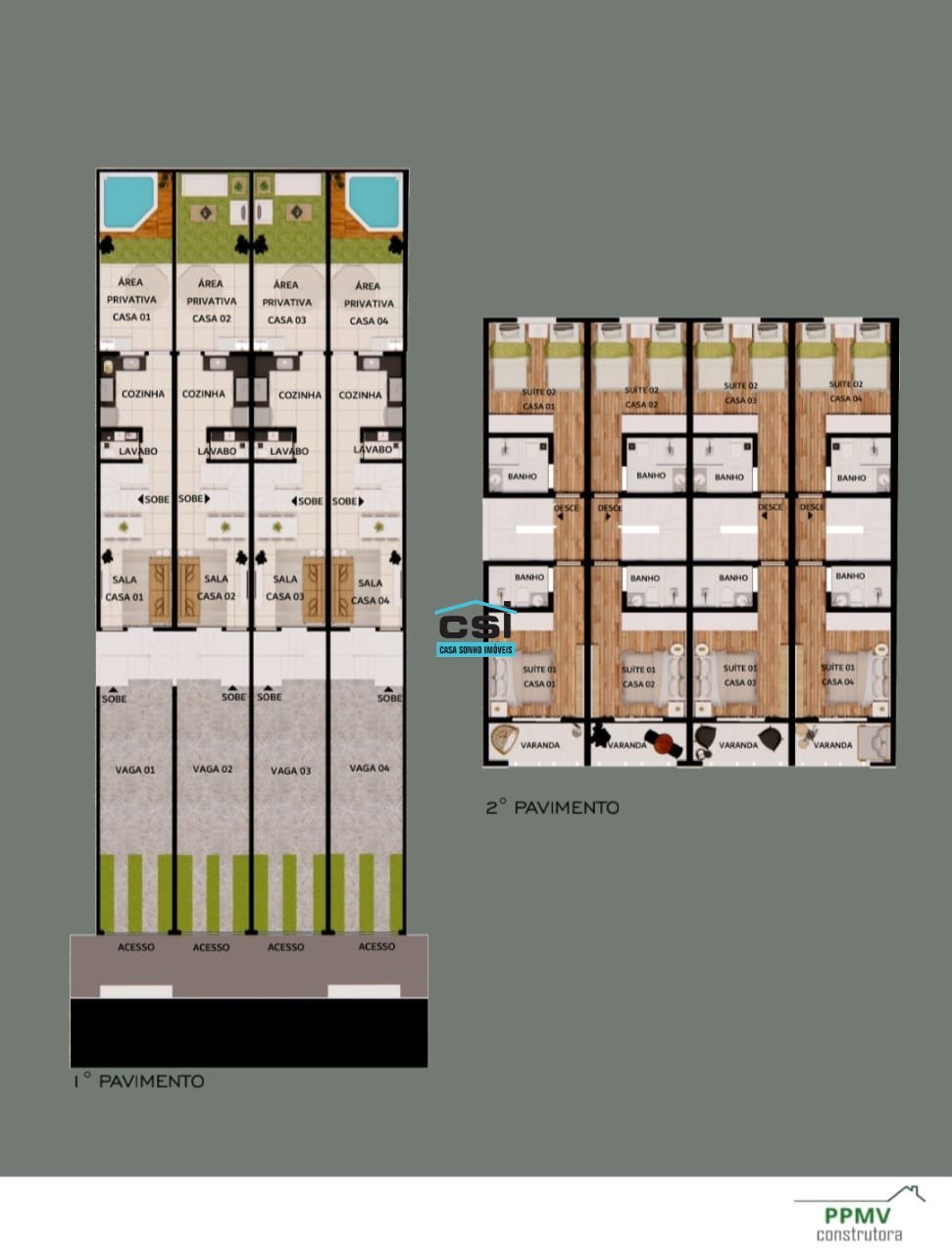 Casa Geminada com Fachada Moderna - 2 Suítes, Área Privativa e 2 Vagas Linda casa geminada com fachada moderna e acabamento de alto padrão. São aproximadamente 80m² de área construída, distribuídos em dois pavimentos: Sala ampla para dois ambientes Lavabo Cozinha com paredes em cerâmica e bancada em granito 2 quartos, ambos suítes, com varanda O imóvel conta ainda com 50m² de área privativa, ideal para implantação de espaço gourmet e lazer, além de 2 vagas de garagem. Diferenciais de acabamento: piso em porcelanato, bancadas em granito, mármore e porcelanato, portas em madeira e pintura externa com textura, garantindo sofisticação e durabilidade. Excelente localização, com acesso rápido às principais vias do bairro e comércio diversificado ao redor, oferecendo praticidade no dia a dia.