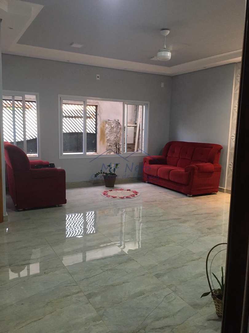 Casa em Santa Fé com 3 quartos, 2 banheiros, 4 vagas na garagem, churrasqueira e uma construção iniciada no fundo do lote.