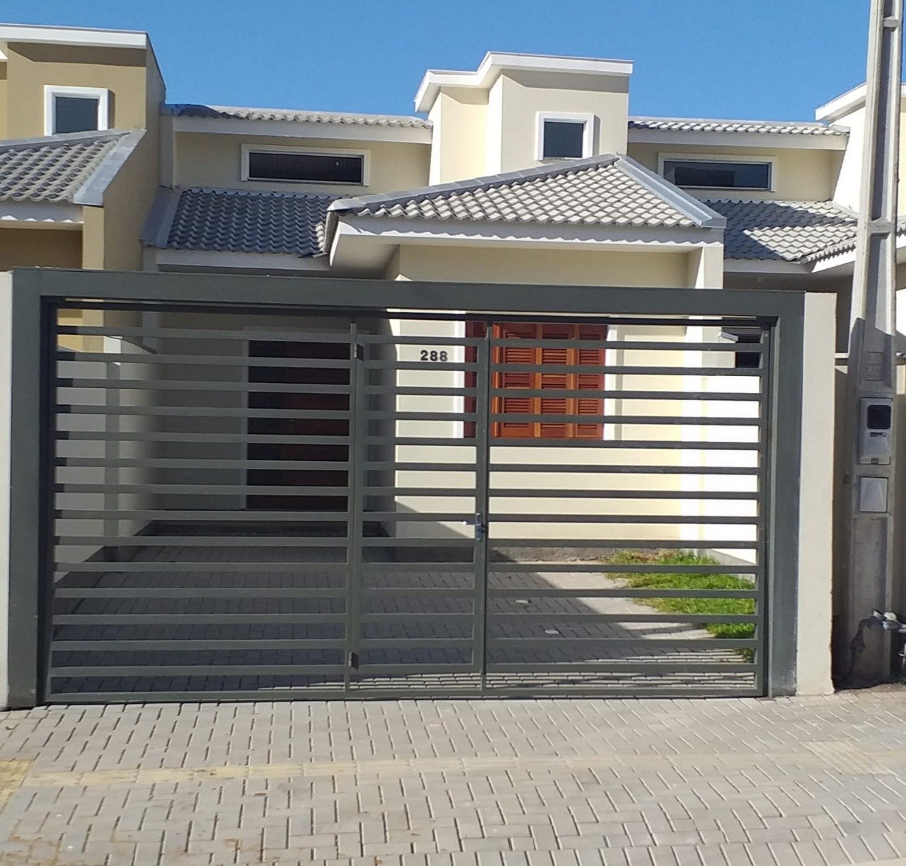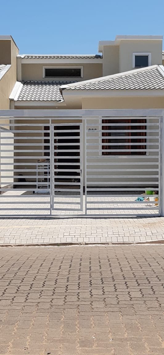 Casa de alvenaria, 2 quartos, 1 banheiro, garagem coberta, pátio no fundo.