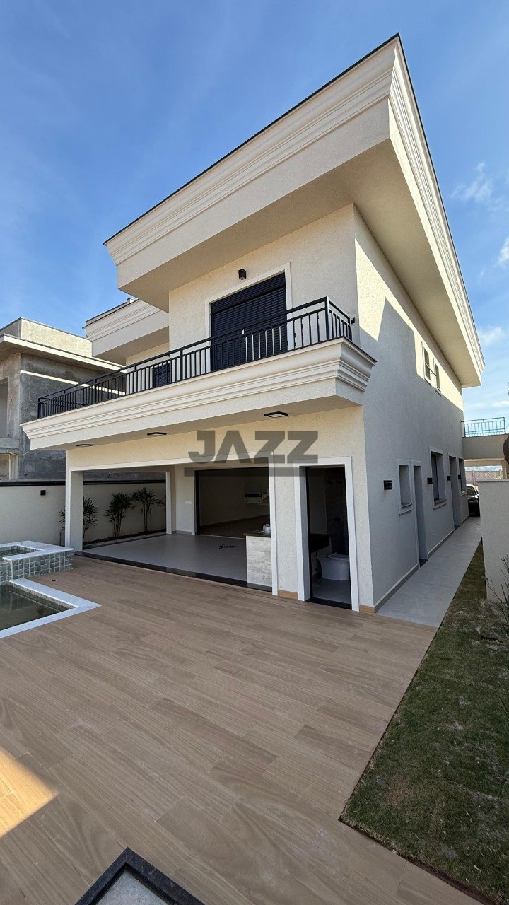 A casa possui 03 dormitórios, sendo todos suítes com varanda e closet, cozinha gourmet, sala de jantar, depósito, área gourmet, piscina, 05 banheiros, escritório com banheiro no piso inferior que pode ser convertido em 04 suíte. Área construída de 266 metros e área total do terreno de 368 m². O condomínio de alto padrão conta com piscine adulta e infantil, academia, playground, salão de festas e quadra de futebol.