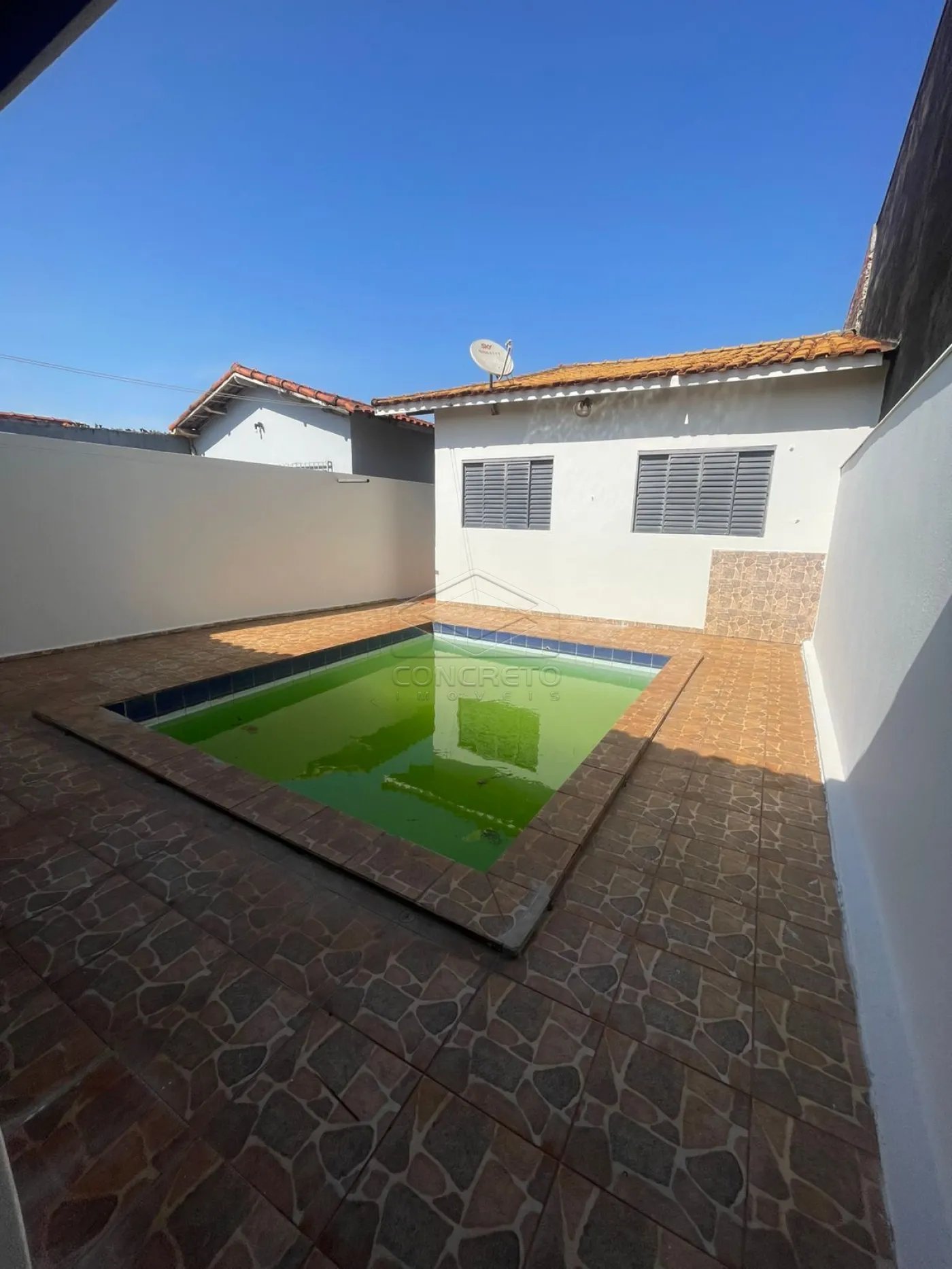 2 QUARTOS; SALA; COZINHA; BANHEIRO; LAVANDERIA COBERTA; PISCINA; GARAGEM PARA 1 CARRO.
