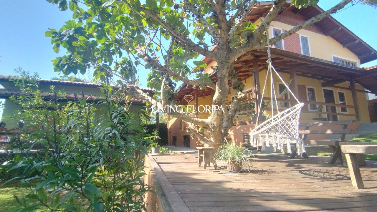 Casa com 3 Dormitórios, terreno de 473,68 m², no bairro Campeche! Um refúgio de charme, luz e natureza no coração do Campeche! Imagine viver em uma casa que une privacidade, conforto e o privilégio de estar cercado pela natureza, em um dos bairros mais desejados do sul da ilha. Este imóvel no Campeche é exatamente isso: um verdadeiro refúgio de tranquilidade e bem-estar, pensado para quem busca qualidade de vida e contato com o verde, sem abrir mão da praticidade de estar a poucos metros da praia e comércio local! Em um terreno arborizado de 473,68 m², estão localizadas duas casas independentes, que juntas oferecem versatilidade e múltiplas possibilidades de uso. A casa principal é para moradia, e a casa auxiliar é perfeita para receber amigos e familiares com privacidade, criar um espaço de trabalho em home office ou até rentabilizar com locação. Com 235,16 m² de área construída, a casa principal se destaca pelo conforto, cômodos amplos e comodidades como lareira e uma ampla varanda. São três dormitórios, sendo um quarto térreo aconchegante e dois quartos no piso superior, incluindo uma suíte com varanda privativa, perfeita para contemplar a natureza e receber a luz natural durante todo o dia. A área social é integrada e acolhedora: a sala de estar conta com lareira, criando um ambiente aconchegante e convidativo para os dias de inverno, e se conecta diretamente à cozinha espaçosa e mobiliada. Além disso, o imóvel conta com área de serviço e uma ampla varanda que envolve a casa, trazendo ventilação cruzada, luz natural abundante e aquele charme especial de casa rodeada por verde. Casa Auxiliar (Studio) A segunda casa, em formato de estúdio em conceito aberto, é um espaço versátil que combina quarto, sala e cozinha de forma integrada. Conta ainda com banheiro completo e uma charmosa varanda ampla, equipada com rede e espaço perfeito para convivência e contemplação. Um ambiente ideal para hóspedes, para uso próprio como home office criativo ou para gerar renda com aluguel. Além disso, o imóvel dispõe de 3 vagas de garagem cobertas e um amplo pátio arborizado com muitas possibilidades. Totalmente regularizado e financiável, este imóvel é mais do que uma casa: é um convite para um estilo de vida