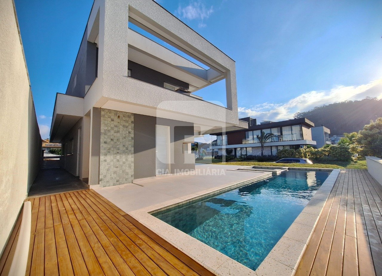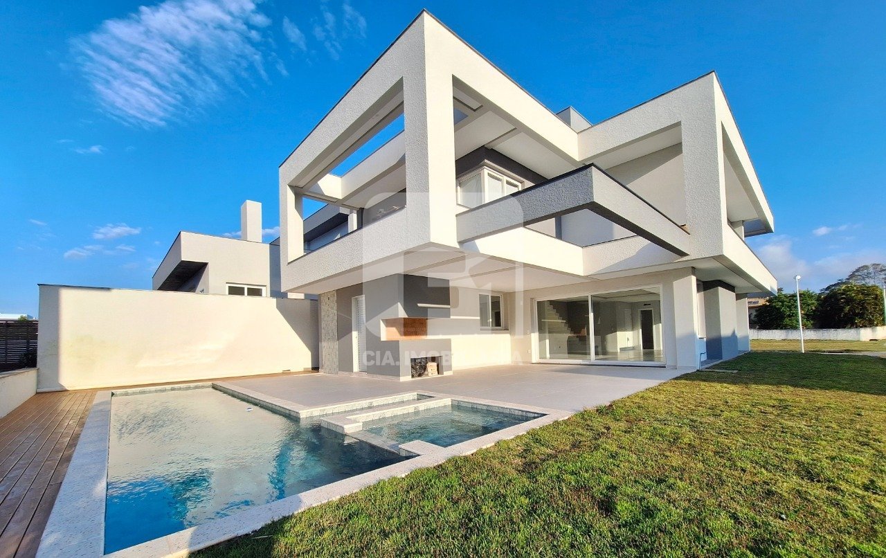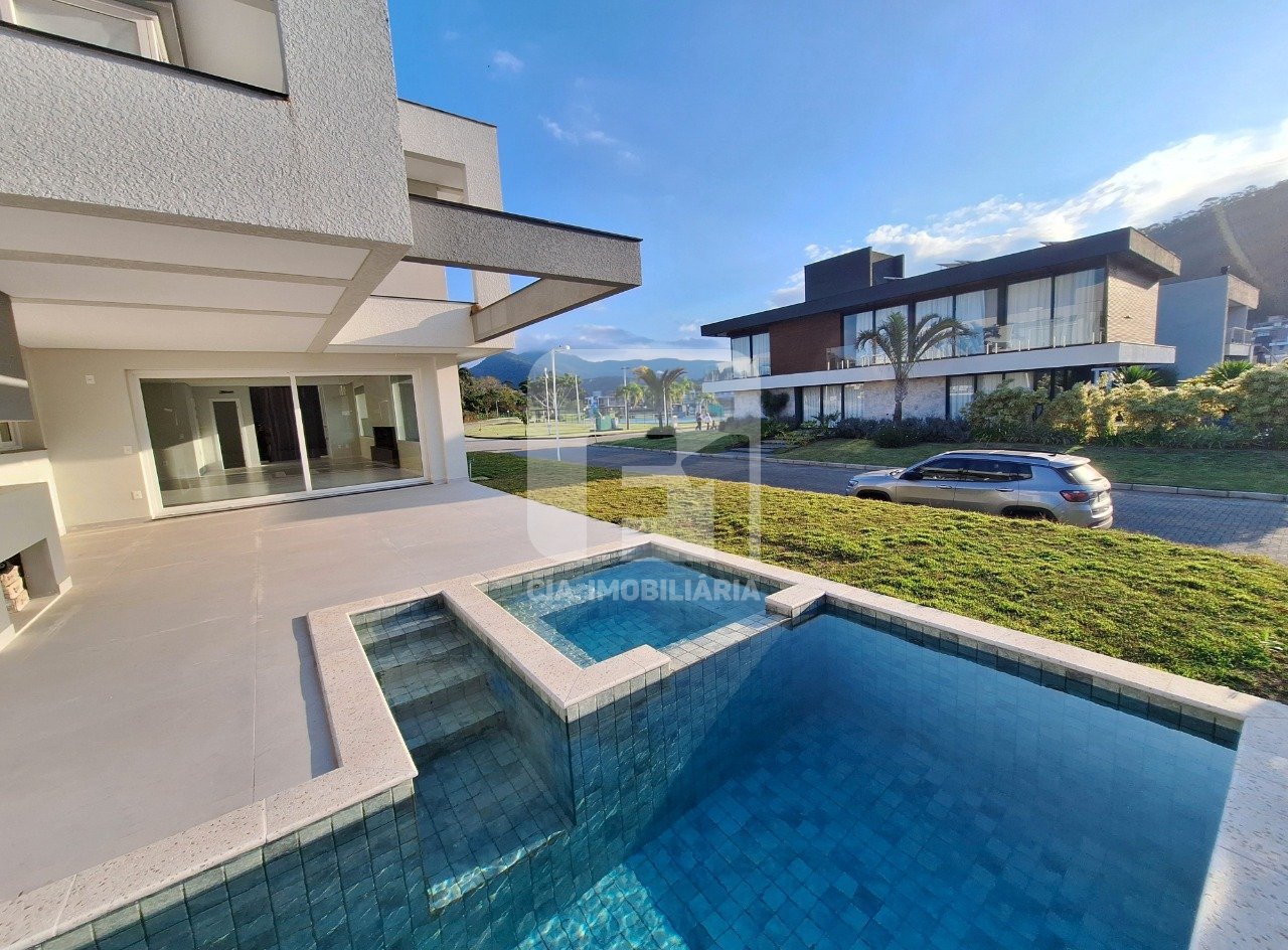 Casa à Venda no Condomínio Jardim Ingleses - Ingleses, Florianópolis/SC !! Localizada em um dos condomínios mais nobres e completos da região Norte da Ilha, esta casa foi projetada para oferecer conforto, funcionalidade e qualidade de vida. O imóvel conta com 4 dormitórios (sendo 1 suíte master + 1 suíte e 2 demi-suítes), ambas com sacada e linda vista livre, living com linda lareira, lavabo, cozinha integrada em conceito aberto, área de serviço e despensa. Na área externa, você encontra quintal privativo com churrasqueira, piscina e hidromassagem, além de 2 vagas cobertas e 2 descobertas. O condomínio oferece segurança 24hrs com guarita e portaria eletrônica, sistema de câmeras por todo empreendimento e uma infraestrutura completa de lazer: salão de festas, espaço gourmet, sala fitness, brinquedoteca, quadra poliesportiva, quadra de tênis, quadra de beach tennis, piscinas adulto e infantil, playground, sala de jogos, pet place, horta compartilhada, mini market, mirante e lindas áreas verdes. Diferenciais de acabamento: aquecimento a gás, infraestrutura para ar-condicionado, piso vinílico no pavimento superior e porcelanato no térreo, forro em gesso. Localização privilegiada, próxima a bares, restaurantes, escolas, supermercados, farmácias, shopping e, claro, às belas praias dos Ingleses e Santinho. Agende uma visita e venha conhecer! Quer se informar sobre crédito para financiamento? Faça uma simulação em poucos minutos!