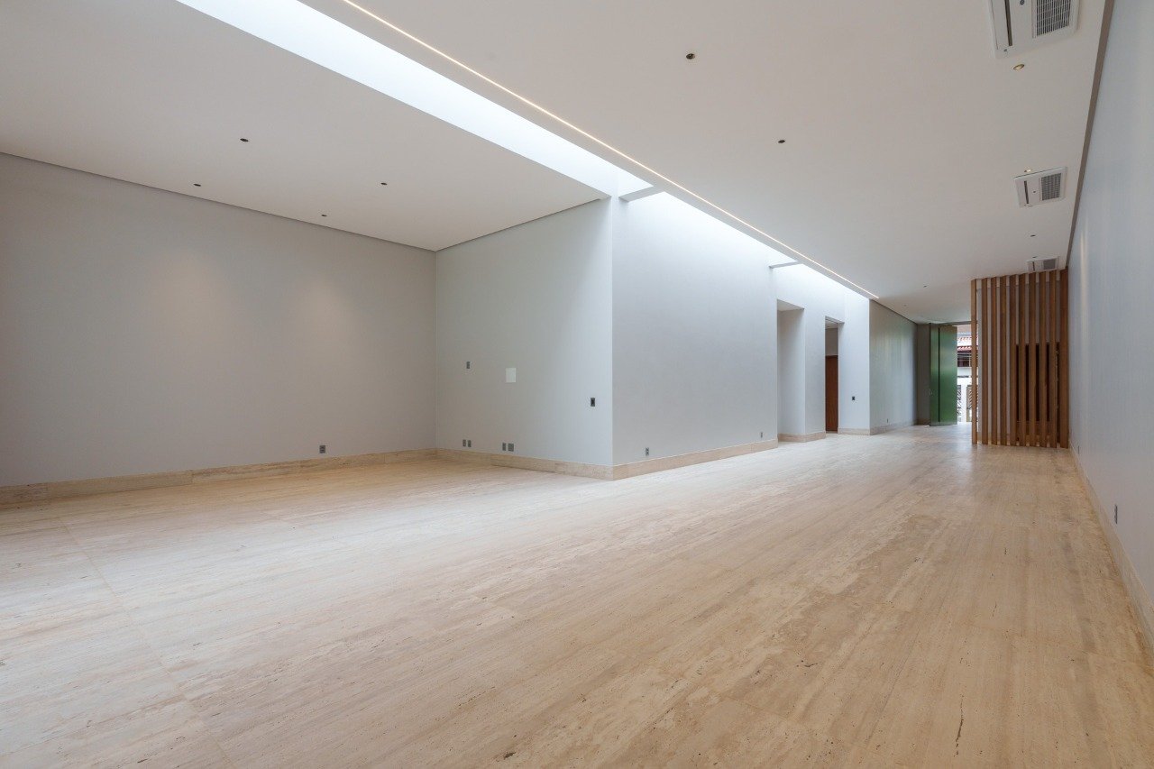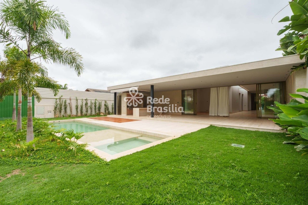 Assinada por Carla Ramos, esta casa nasceu pronta. Cada detalhe, dos revestimentos à iluminação, foi pensado com precisão, sem espaço para improviso. Um projeto que une sofisticação e propósito, feito para quem não quer esperar o que já pode viver. O travertino natural reveste as áreas sociais internas e externas, criando uma atmosfera elegante e contínua. Na cozinha, área de serviço e garagem, o granito preto escovado traz força e contraste. Nos quartos, o conforto do piso vinílico se soma à marcenaria de alta qualidade, aos metais e louças de renomadas marcas, à iluminação e à automação completa. Nada aqui é sobre tendência, é sobre critério. O living com pé-direito alto e luz natural em abundância integra-se à área gourmet e à piscina aquecida com borda e saia em travertino, porcelanato submerso e acabamentos impecáveis. Tudo disposto em um único pavimento, em um layout que valoriza o espaço, o respiro e a funcionalidade real. A casa está cercada por uma vizinhança consolidada e comércio selecionado. Padarias, escolas, hospitais e o centro comercial compõem o entorno, com saídas rápidas para as duas pontes e o aeroporto. São quatro suítes que traduzem conforto e discrição em um projeto contemporâneo e definitivo. Uma casa que não segue modas, dita padrões.