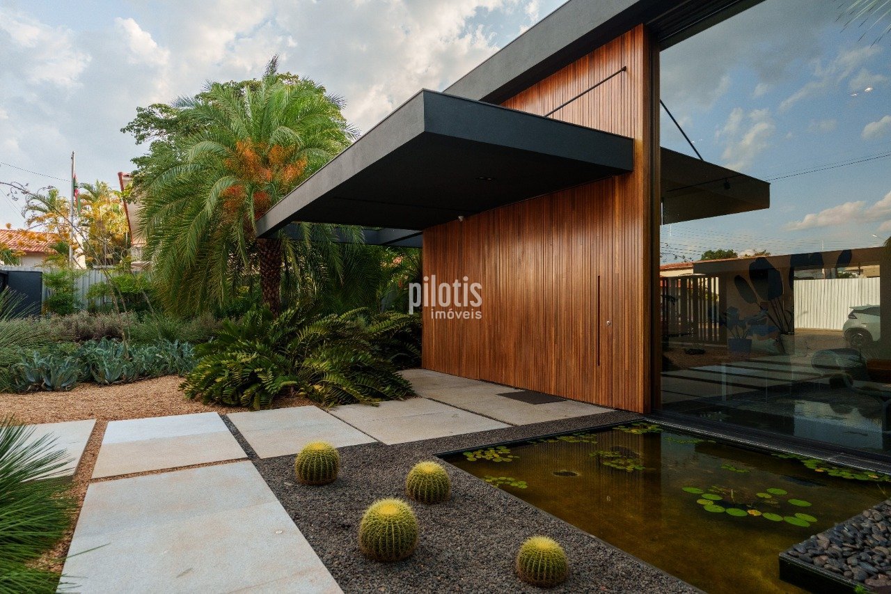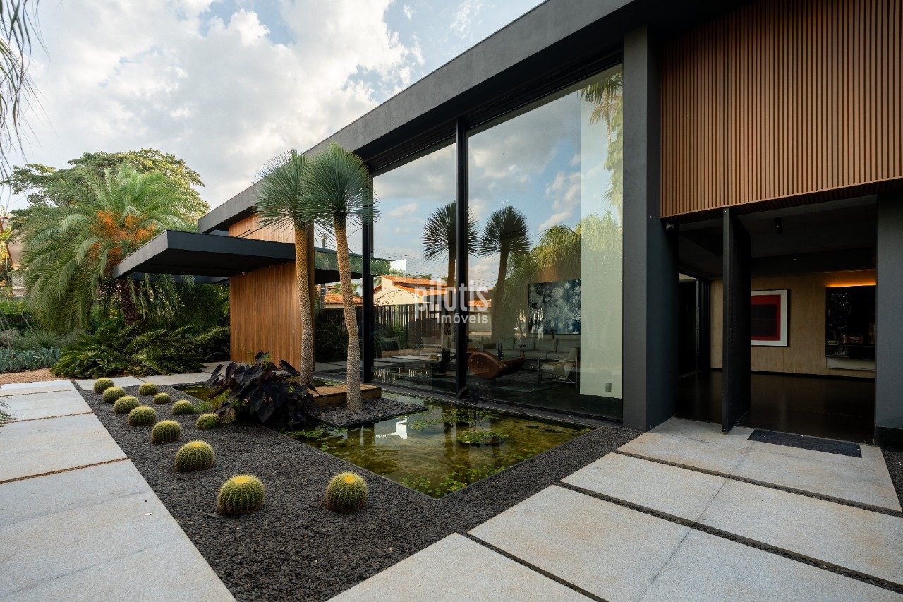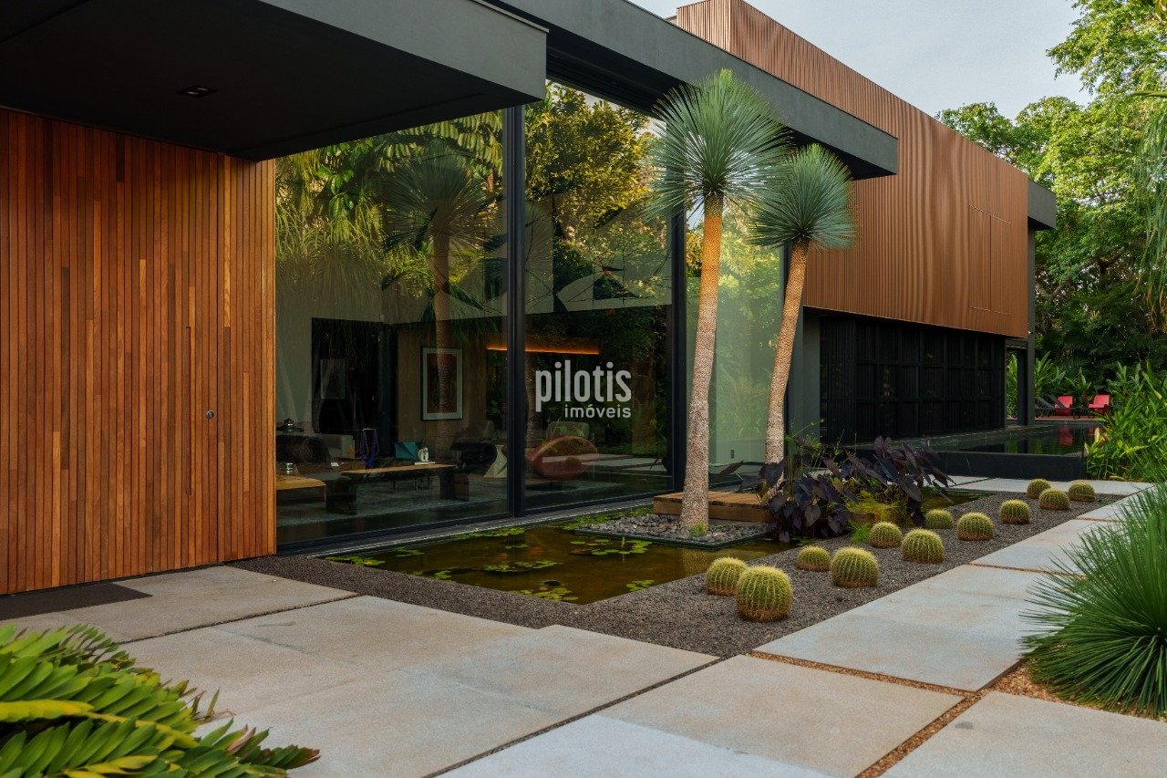 Casa em lote especial de ponta de quadra contando com um paisagismo fantástico !! - Hall de entrada com porta pivotante com ripado de madeira e espelho d'água. - Sala com pé direito duplo com linda obra de arte por Daniel Jacaré. - Lavabo com interação a um lindo jardim de inverno. - Área gourmet espaçosa com excelente integração. - Piscina com raia de 25 metros e prainha, hidromassagem e capa elétrica. - Automação. - Esquadrias de alumínio com persiana automatizada. - Todos os quartos contam com uma vista para o verde. - Automação - Arte e cinema: Iluminação, persianas, som ambiente, climatização e segurança. - Marcenaria: painéis, portas e revestimentos de paredes todos em lâminas naturais (freijó e cumaru). - Esquadrias de alumínio. - Armários. - Piso em granito natural preto São Gabriel escovado em grandes formatos e cumaru estruturado. - Bancadas em corian. - Metais de qualidade. - Sistema de iluminação por ondas de rádio: tecnologia de automação de iluminação com interruptores por onda de rádio e integração com o sistema geral da residência. - Carregador para carro elétrico. - Eletrodomésticos: Forno combinado profissional, forno profissional, coifa com exaustor independente. - Elevador: padrão predial para 8 pessoas. Agende agora uma visita e conheça também as outras opções de imóveis disponíveis!