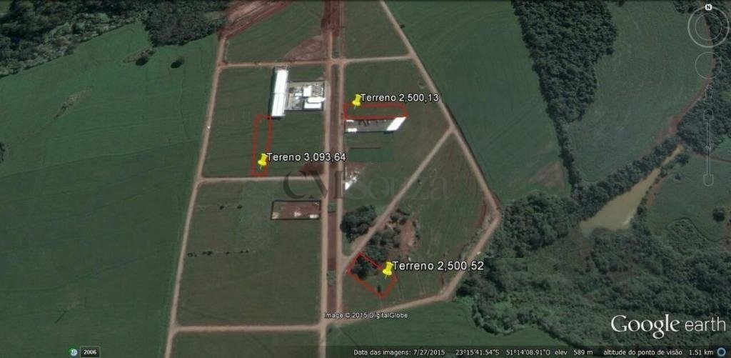 O terreno à venda possui 2500m² de área útil, é industrial e está localizado próximo ao centro de distribuição. O terreno é totalmente plano e possui zoneamento ZI2, além de estar perto da Rodovia 445.