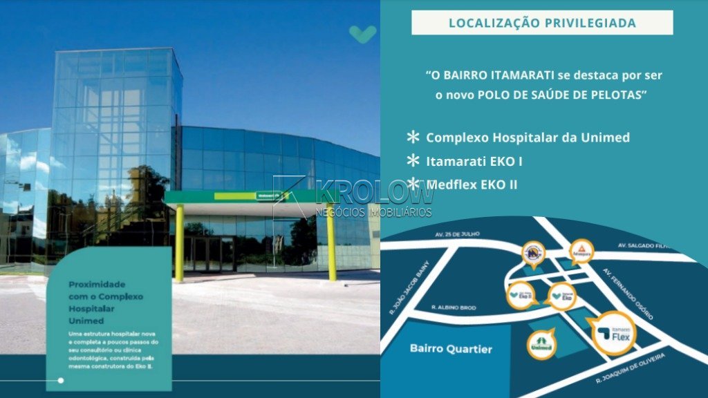 Invista em sua Carreira na Área da Saúde com a Sala Medflex EKO II! Localização Estratégica: Situada no coração do Bairro Quartier, em frente a um renomado complexo hospitalar, a Sala Medflex EKO II oferece conveniência e visibilidade excepcionais para profissionais da saúde. Tudo que Você Precisa: Esta sala comercial foi meticulosamente projetada para atender a todas as necessidades dos profissionais da saúde, conforme as diretrizes da norma RDC50 da Anvisa. Desde o hall de entrada até o seu escritório, cada aspecto foi pensado para proporcionar a melhor experiência e conforto para seus pacientes. Metragens Generosas: Com uma área total de 93,31 metros quadrados e uma área privativa de 64,40 metros quadrados, esta sala oferece espaço amplo o suficiente para você exercer sua prática profissional com eficiência e comodidade. Infraestrutura Completa: O empreendimento Medflex EKO II oferece uma infraestrutura condominial completa, incluindo portaria, gerador de energia, energia fotovoltaica, elevador para maca, além de salas entregues com piso e piso elevado para instalação de cadeira odontológica. Os banheiros masculino e feminino coletivos por andar garantem praticidade e conforto. Invista no Seu Sucesso: Não perca a oportunidade de fazer parte deste empreendimento de prestígio e dar um impulso à sua carreira na área da saúde. Agende uma visita hoje mesmo e descubra como a Sala Medflex EKO II pode ser o ambiente ideal para o crescimento do seu negócio. Faça da sua prática profissional um sucesso no coração do Bairro Quartier com a Sala Medflex EKO II!