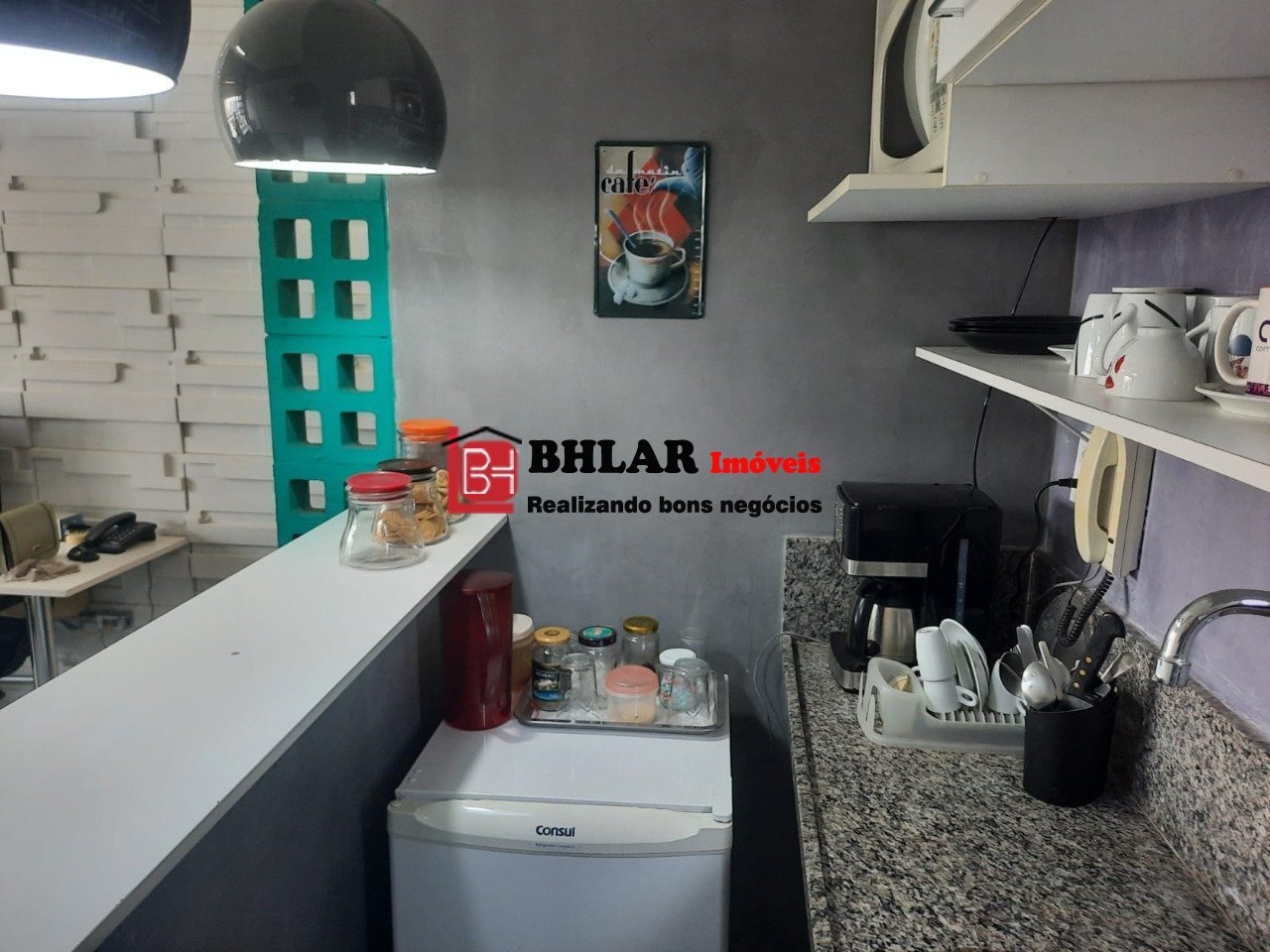 Sala comercial com banheiro, bancadas, decorada, excelente localização, próximo à avenida Brasil e Paróquia de Santa Efigênia.