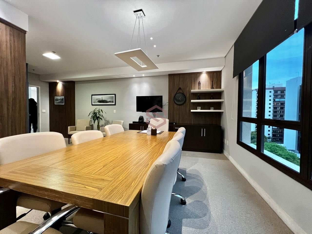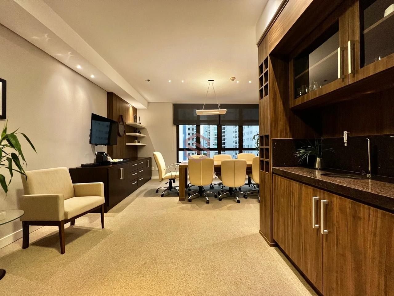 R$ 1.700.000,00 Edifício Jardim Aquárius Porteira fechada!!! 147m2 6 salas sendo: 1 sala de reunião grande inteira equipada e decorada com banheiro +2 salas grandes Recepção Banheiro social 3 salas com mesa e armários Banheiro social Copa e banheiro 1 sala de reunião menor 3 vagas de garagem Agende sua visita