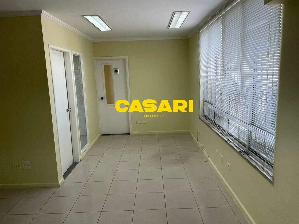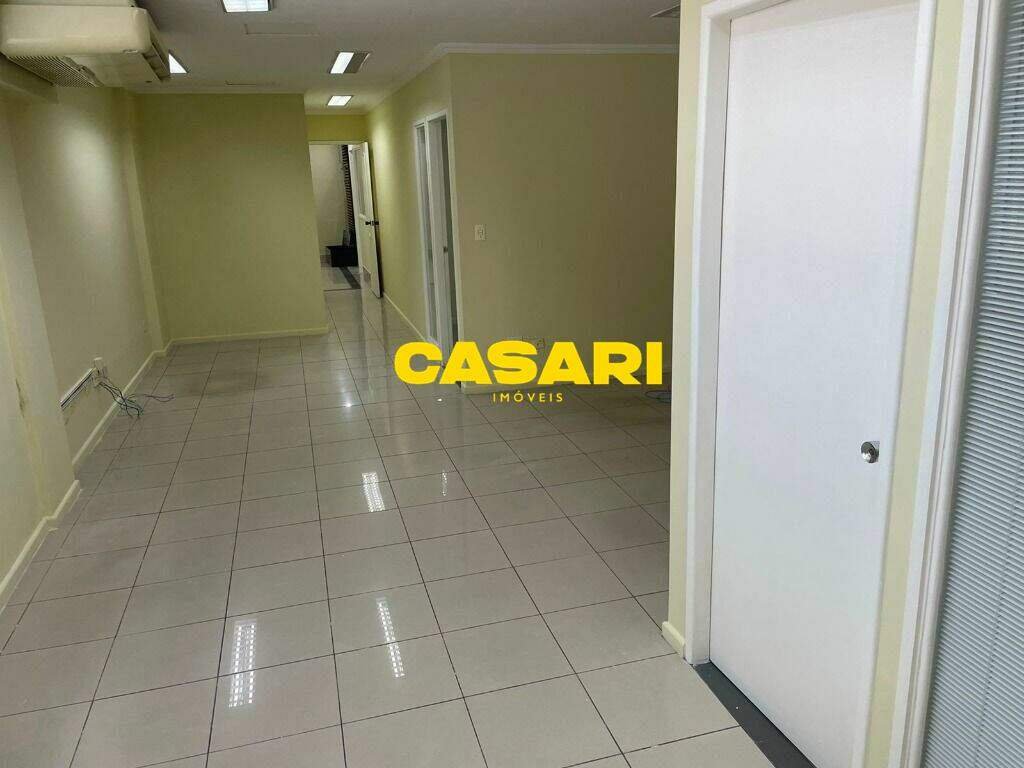 Sala comercial de 113 m² na Avenida Faria Lima, Centro de São Bernardo do Campo, com 3 salas, copa, 2 banheiros e ar condicionado. Localização privilegiada próxima ao Paço Municipal e transporte público. Vaga de garagem e estacionamento privado disponível. Aceita financiamento.