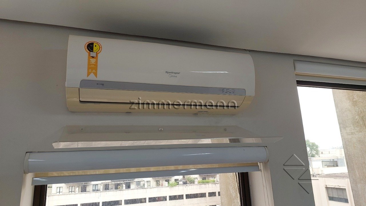 Sala totalmente reformada com 45 m². Dois banheiros e copa. Ar condicionado. Uma vaga de garagem coberta. Portaria e segurança 24 horas. Excelente localização ao lado do parque, próximo às saídas das rodovias.