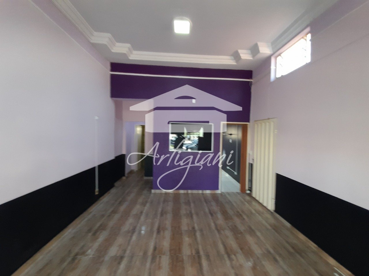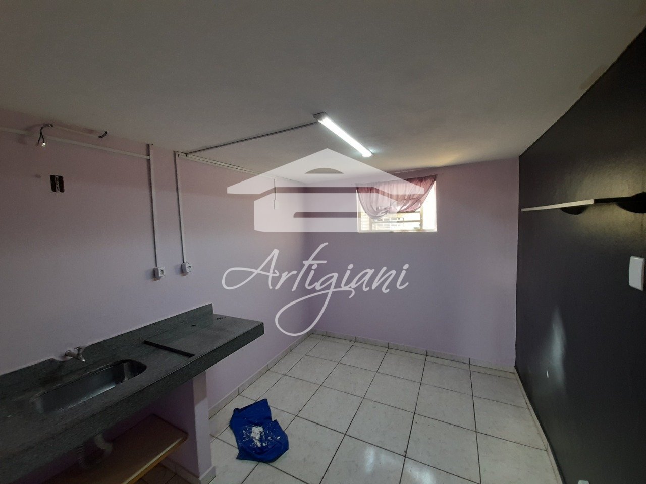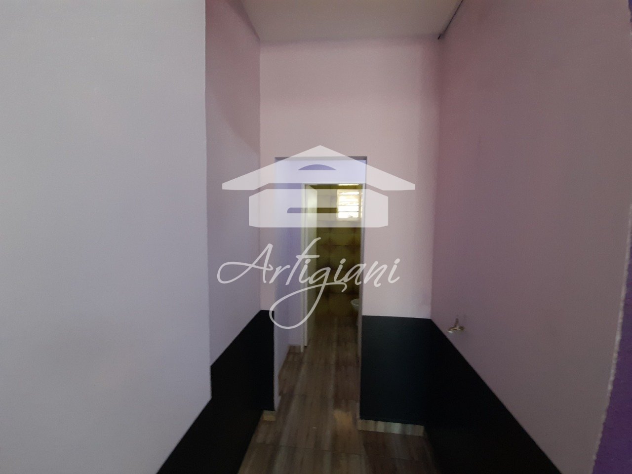 Salão com 40m², 1 banheiro e cozinha.