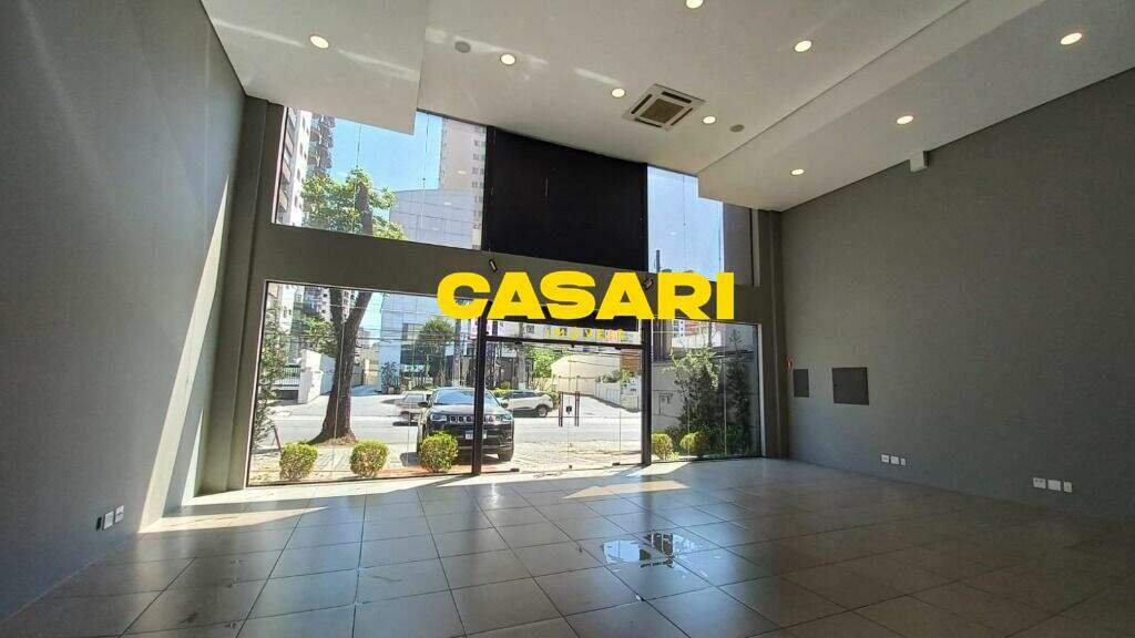 Salão para aluguel localizado no Centro de Santo André, com 170 m² de área construída e acabamento de alto padrão. O pavimento inferior conta com pé direito duplo, fachada em vidro e vaga para 4 carros no recuo. Possui 2 lavabos completos, piso de madeira na área principal e copa, além de mezanino com assoalho e escada de acesso. O espaço inclui depósito fechado, sistema de ar condicionado, luminárias instaladas e infraestrutura para sistema de segurança com câmeras. Excelente oportunidade para seu negócio, situado ao lado do Shopping ABC e próximo ao centro da cidade.