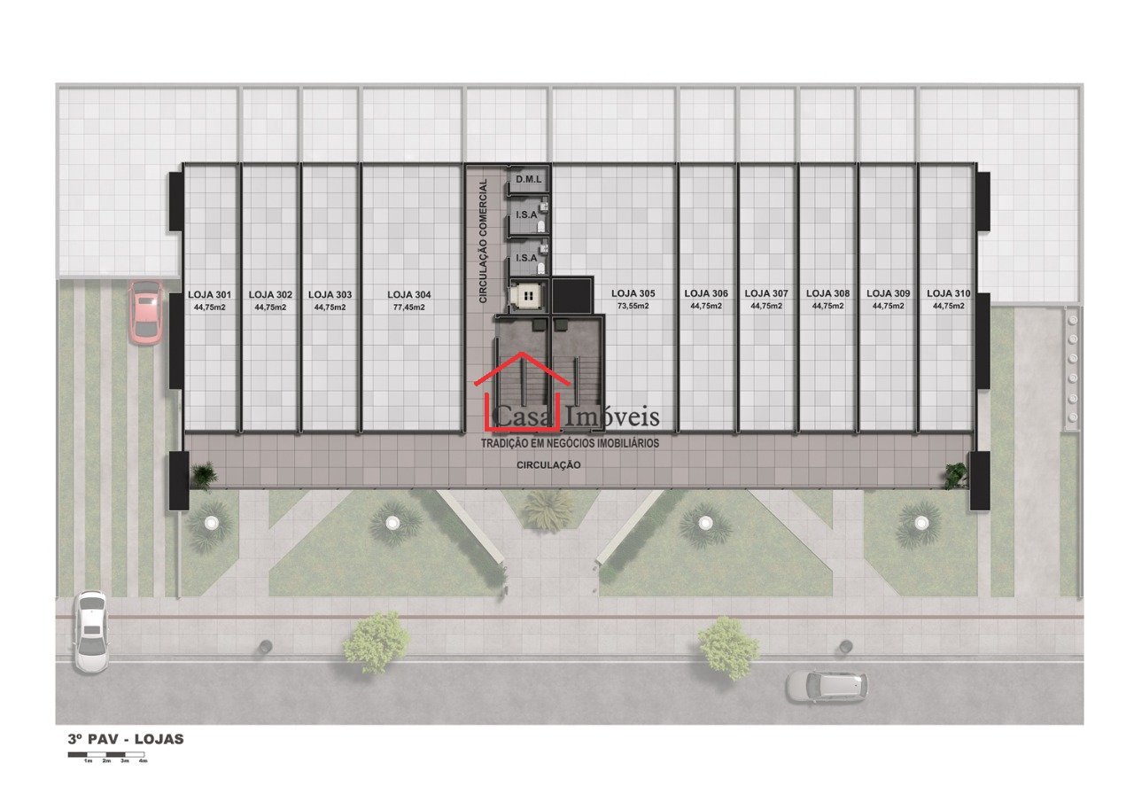 Loja do 3° piso, com 51,52 m² e 1 banheiro.