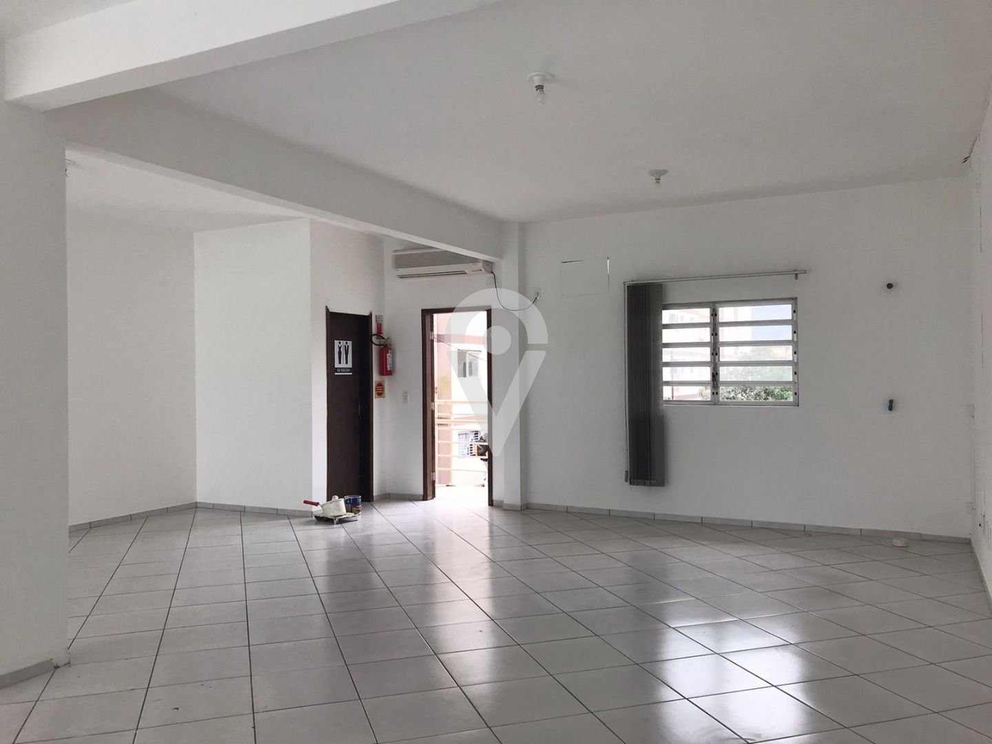 Sala comercial com 100M², piso superior com 1 banheiro, 1 vaga de garagem.