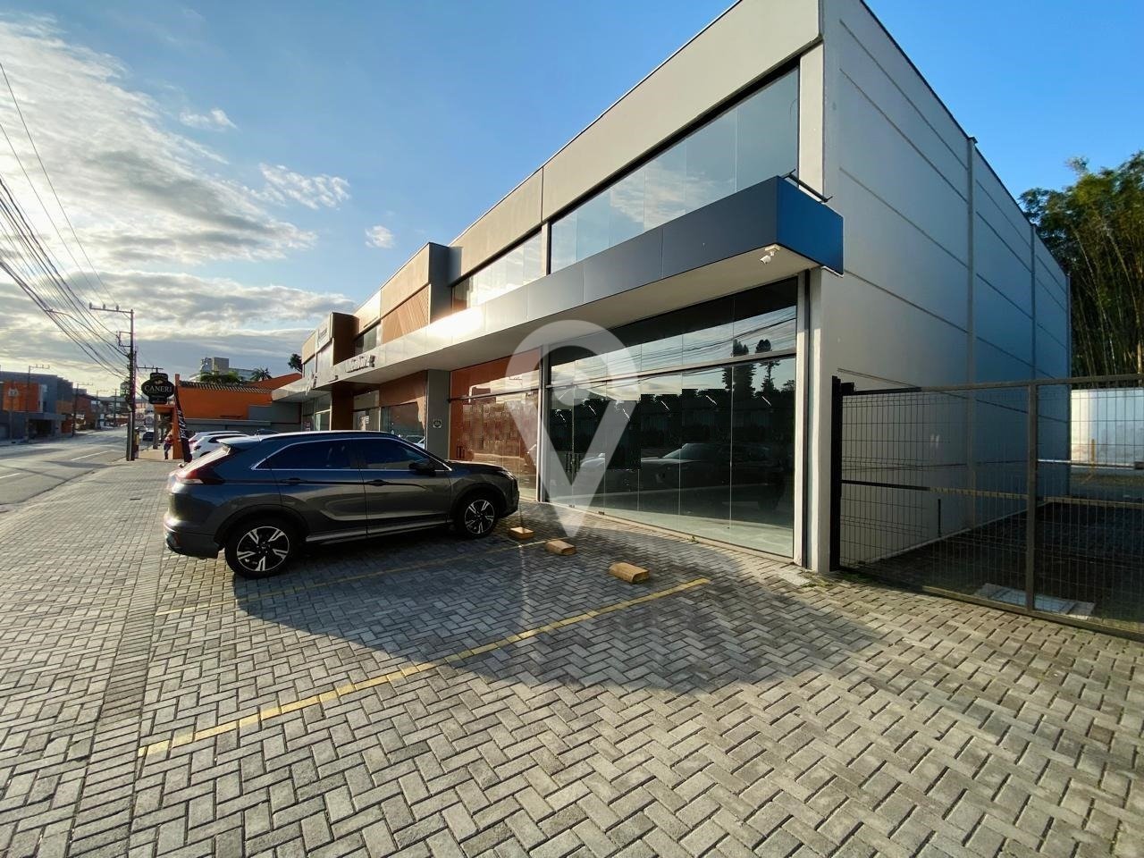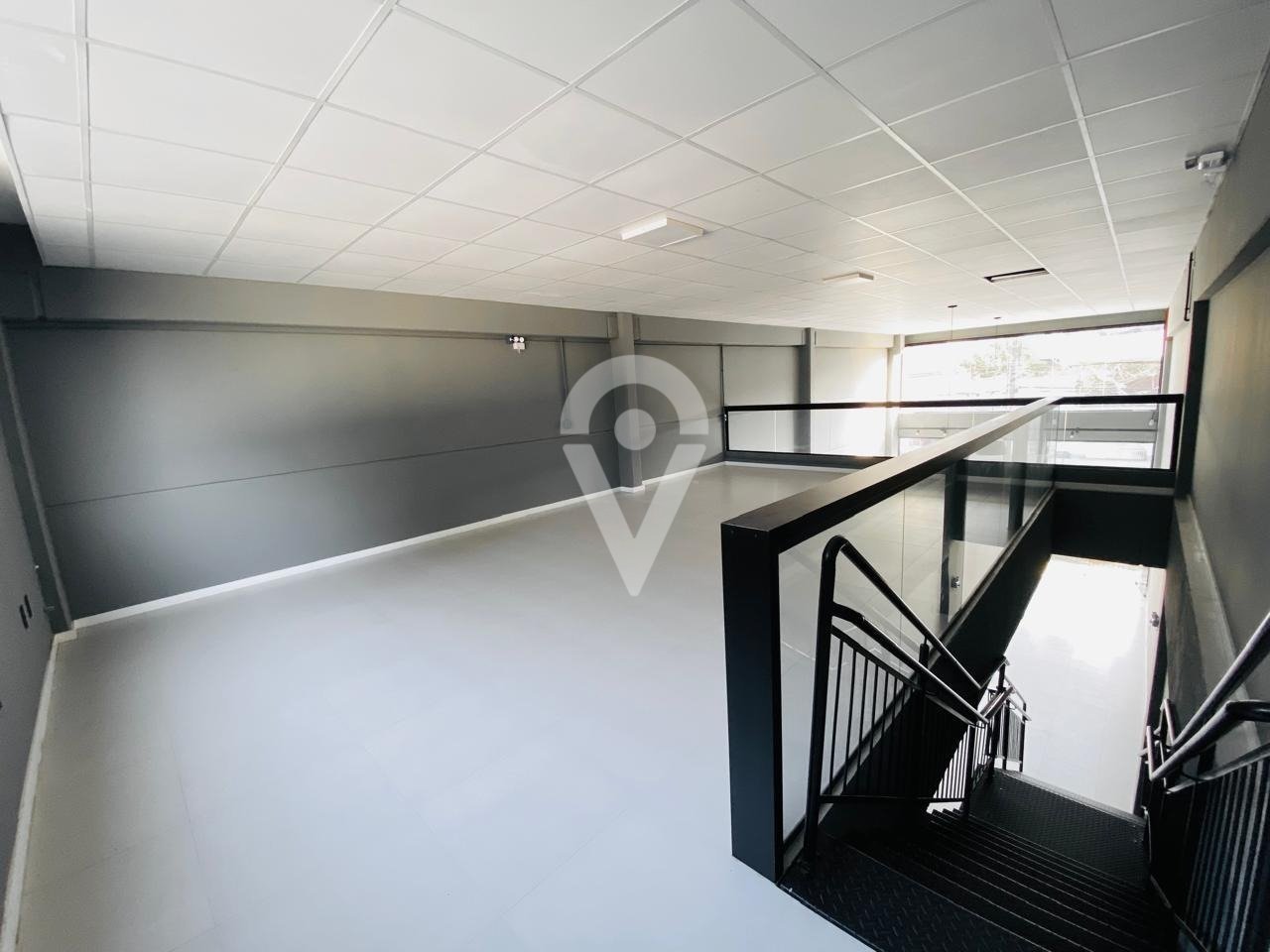 Sala comercial com mezanino, 2 banheiros (1 deles com acessibilidade), 2 vagas privativas nos fundos, 11 vagas rotativas na frente. Ótima localização.