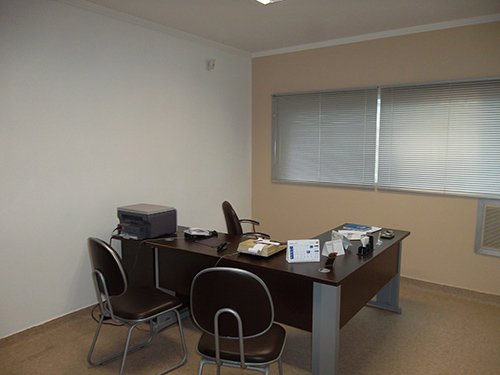 Prédio comercial com 06 salas, 2 banheiros, assim distribuído: Sala de diretoria com suíte, 02 salas de reunião, recepção + 3 salas, copa; há cabine de força que não pode ser alterada, pois o proprietário tem nos fundos uma indústria com saída para outra rua.