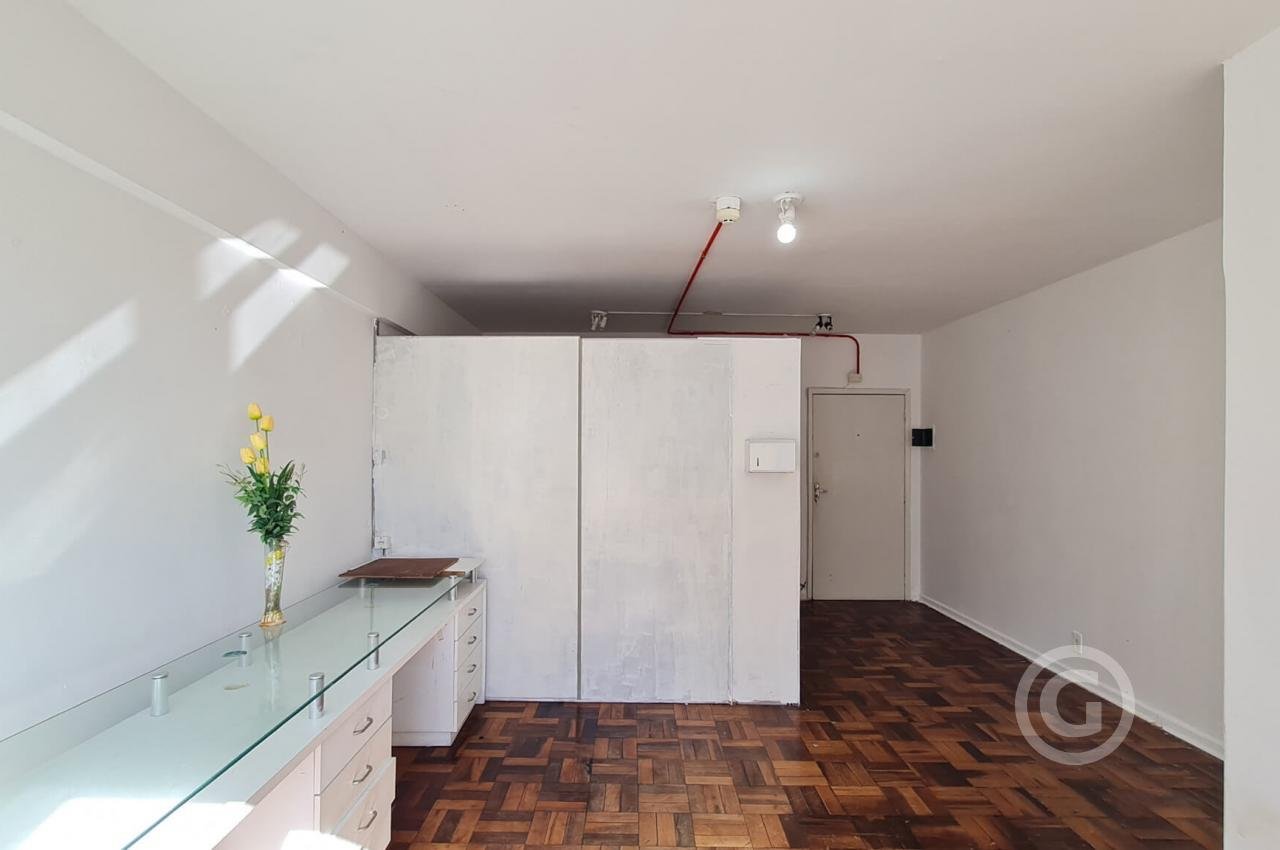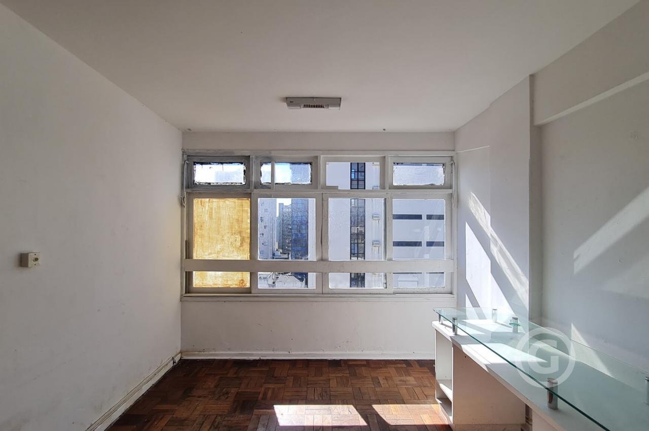 Vende sala comercial, com área de 27,20 m², no centro de Florianópolis; 1 banheiro e divisórias. Condomínio com elevador e porteiro 24 horas. Agende uma visita!