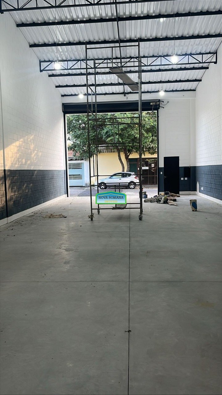 Galpão com 640 m2, sendo 480 no térreo e 160 m2 de mezanino. São 4 banheiros no térreo, mais 2 no mezanino, 2 copas.
