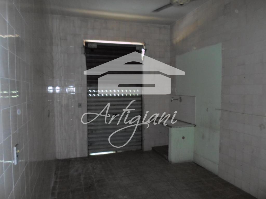 Salão comercial com piso cerâmico, banheiro, azulejo nas paredes, área construída de 50 m².