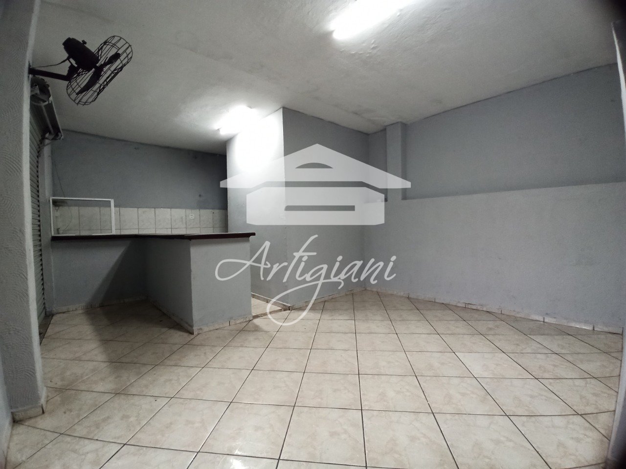 Salão com 60 m², 2 banheiros, cozinha, balcão.