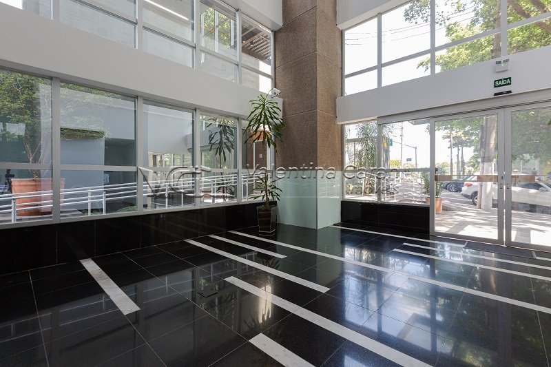Andar com 241,11m² de área útil, distribuídos em 03 salas com muita luminosidade natural, com vista pelas 4 laterais, forro modular com luminárias, aparelhos de ar condicionado, piso elevado com cabeamento, varanda e 6 vagas de garagem. Excelente localização, próximo a avenidas importantes. Imóvel em prédio com 9 andares, fachada toda em vidro, hall de entrada suntuoso em mármore e pé direito duplo.