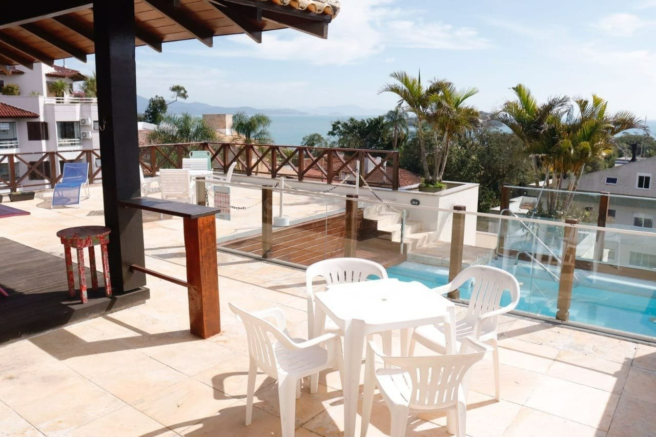 Pousada em Canasvieiras com 5 pavimentos: Pavimento 2: Cobertura duplex com 3 suítes mais 1 suíte máster com banheira. Ainda conta com ampla cozinha, piscina, espaço gourmet e uma belíssima vista do mar. Pavimento 1: 4 apartamentos de 1 quarto e 1 apartamento de 2 quartos, todos com sala, cozinha e ar condicionado. Pavimento térreo: estacionamento para 10 veículos, espaço gourmet com vista panorâmica, 1 apartamento com sala, 2 quartos e cozinha americana. Subsolo 1: Espaço utilizado no formato de Hostel, com 10 camas, cozinha e banheiro. Viabilidade para fazer salão de festas. Subsolo 2: Utilizado como depósito. Subsolo 3: Utilizado como depósito. A pousada está situada em uma localização privilegiada, junto à rodovia que liga as praias de Canasvieiras e Jurerê. O terreno tem 523,5 m² e 1.350 m² de área construída e conta em sua estrutura com reservatórios de água de 30.000 litros, caldeira para aquecimento d'água em todas as dependências, gás central, lavanderia, estrutura para receber elevador. Valor sujeito a alteração sem aviso prévio. ACEITA FINANCIAMENTO.
