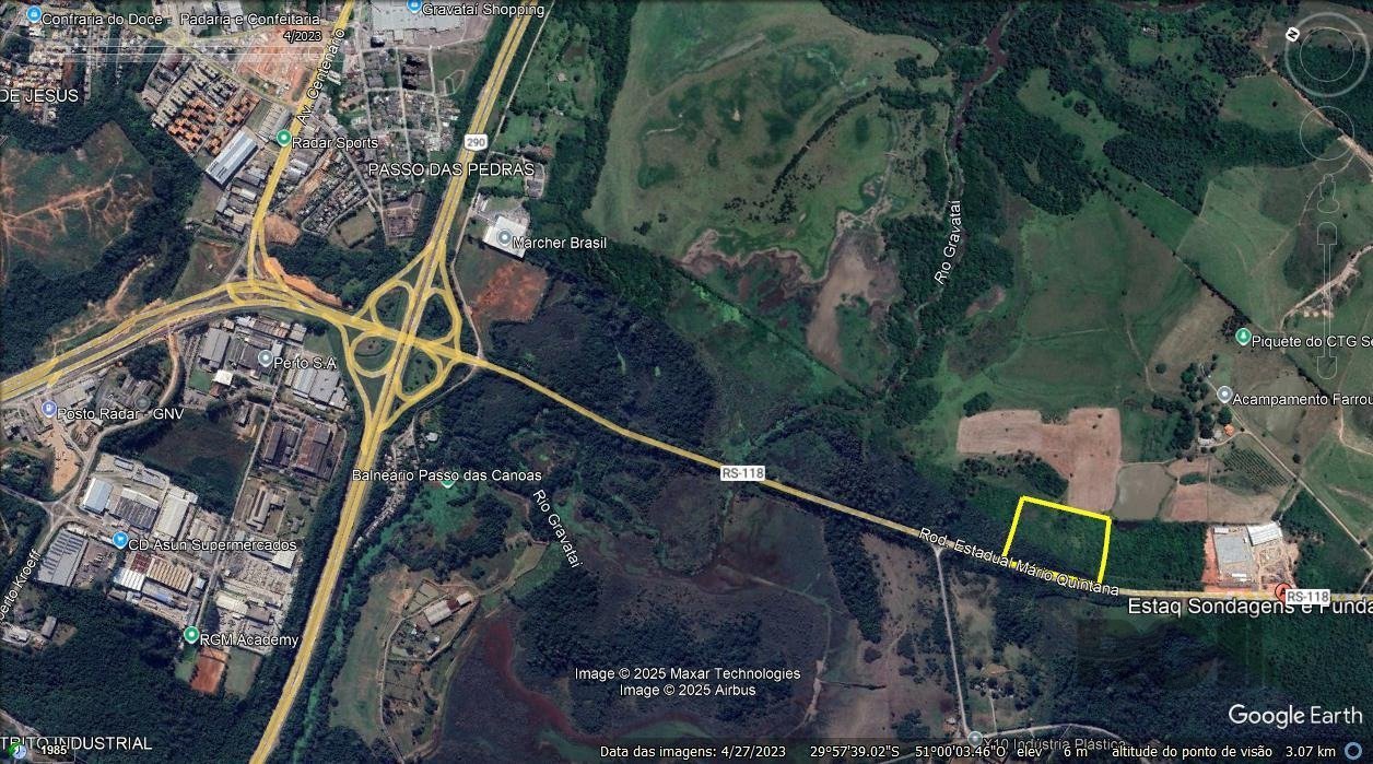 Área com 20.000 m², com 120 metros de frente para RS 118 km 24, nas proximidades da freeway, próximo ao Distrito Industrial de Gravataí, localizado ao lado de instalações de uma empresa. Bem em frente à entrada principal do Distrito Industrial de Alvorada. Área com localização e logística estratégica e com potencial de valorização para investidores, haja visto que a duplicação da Rodovia já está a poucos metros da frente da área em fase total de obras.