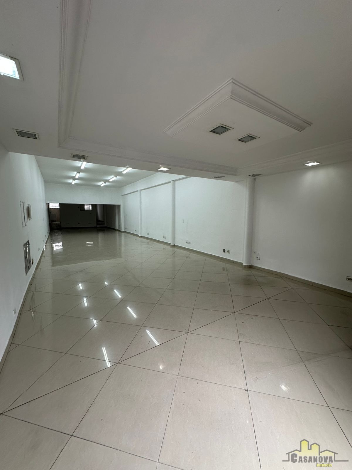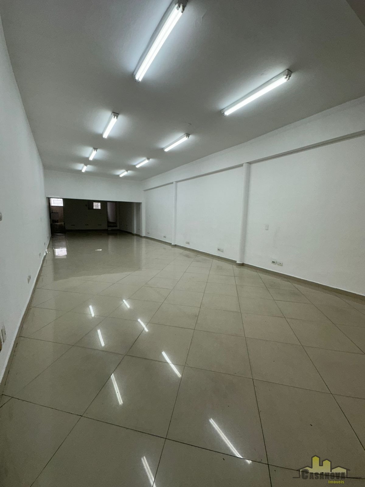 Salão com 90m², com escritório, cozinha e 2 banheiros.