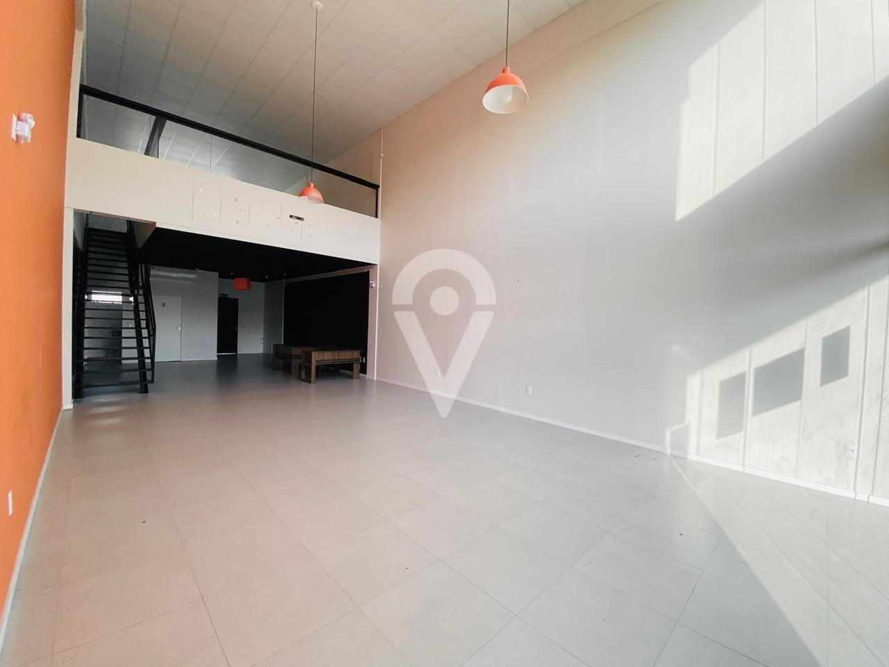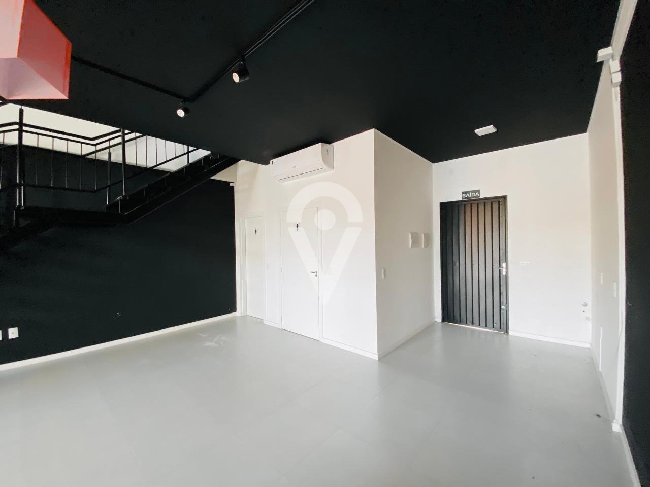 Sala comercial com mezanino, 2 banheiros (1 deles com acessibilidade), 2 vagas privativas nos fundos, 11 vagas rotativas na frente. Ótima localização.