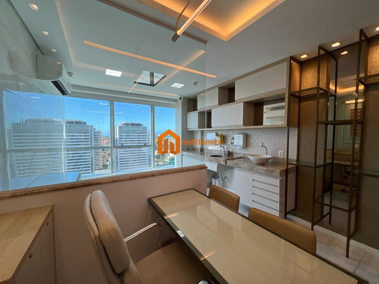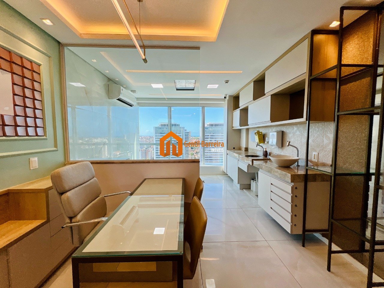 Eleve o seu negócio para outro patamar com esta sala comercial de alto padrão, localizada no andar alto, em uma das áreas mais prestigiadas de Fortaleza. Características do Imóvel: - Área total: 33m² - Andar: Alto, proporcionando uma vista espetacular da cidade - Acabamento premium: Móveis projetados em MDF, iluminação em LED de alta qualidade, e lavabo com acabamentos de luxo. - Pronta para uso: Espaço totalmente equipado com mobiliário para recepção, área de café e consultório, ideal para quem busca começar a operar imediatamente. - Vaga de garagem: 1 vaga exclusiva, garantindo praticidade e segurança. - Acesso exclusivo: Cartão de acesso 24h ao shopping, agregando ainda mais conveniência ao seu dia a dia. Por que escolher essa sala? - Localização estratégica dentro de um dos maiores centros empresariais da cidade, com fácil acesso a serviços, lojas e restaurantes. - Estrutura moderna e sofisticada, perfeita para clínicas, consultórios médicos, escritórios advocatícios ou outros negócios que buscam um espaço funcional e elegante. - Pronta para receber você e seus clientes com conforto, sem a necessidade de grandes investimentos em reforma ou mobília.