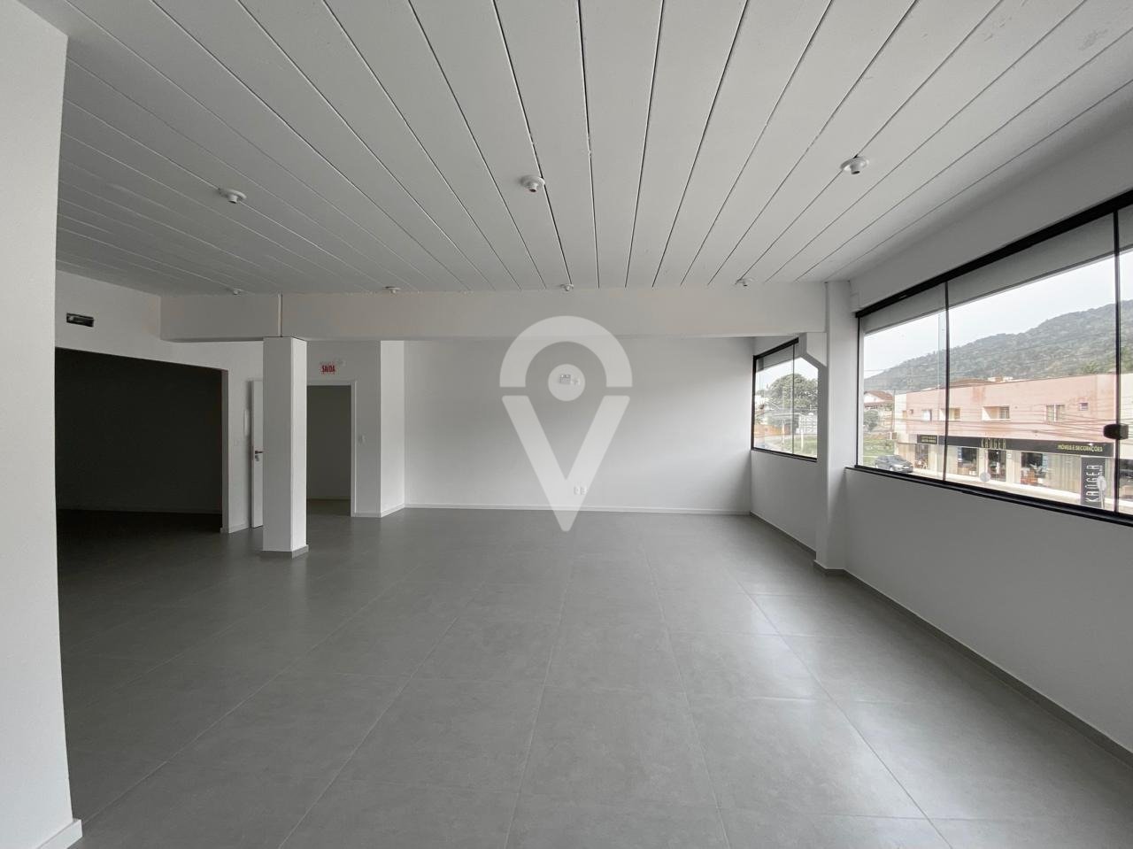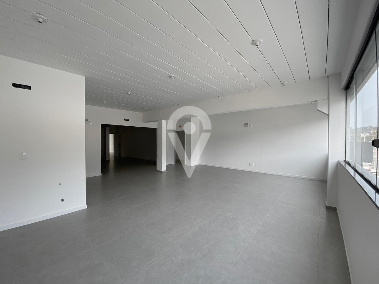 Sala comercial (piso superior) com 4 banheiros, vagas de estacionamento.
