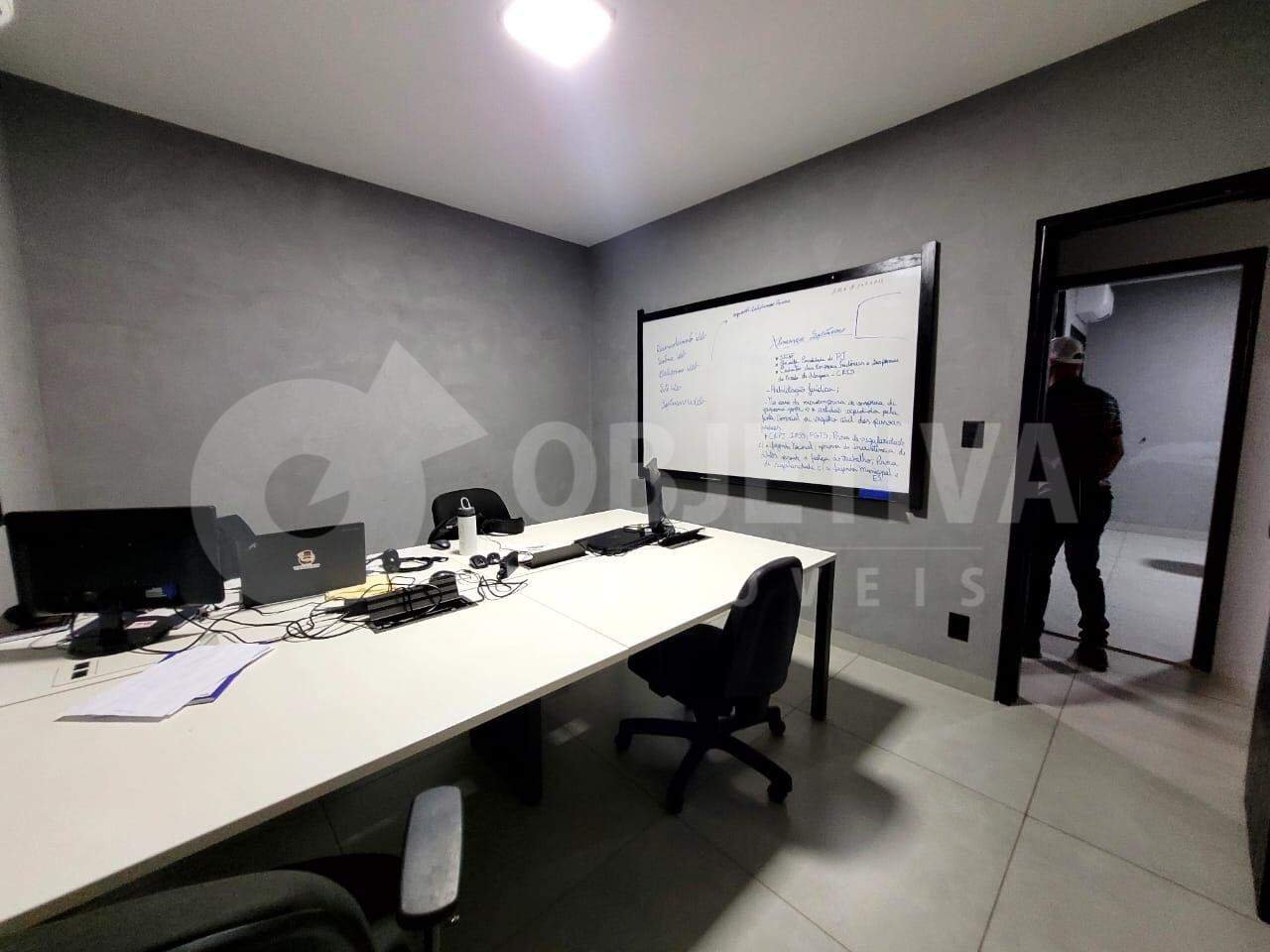 Ótima sala comercial no centro de Uberlândia com 40 metros quadrados, montada com ar condicionado, iluminação, armários, mesa e cadeiras. Linda pintura. Com banheiro, piso porcelanato. Próximo à avenida Rondon Pacheco. Em mini condomínio com sala de jogos, varanda gourmet, brinquedos, área de convivência, lounge e cozinha. Entre em contato, vamos te ajudar na negociação.