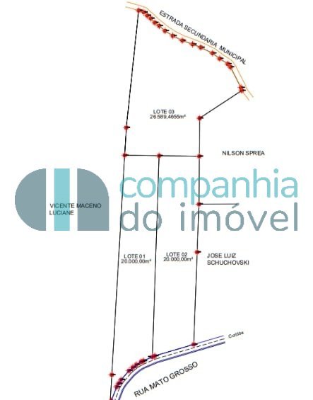Oportunidade Exclusiva para Investidores e Moradia - Campo Largo/PR Dois terrenos de frente para a Rua Mato Grosso, nº 2650, no bairro Ferraria - ao lado do Novo Alphaville Paraná, apenas 1 km de distância e a 15 minutos do Parque Barigui. Região em pleno crescimento, com alta demanda por condomínios horizontais e forte potencial de valorização no curto, médio e longo prazo. Detalhes dos Imóveis: . 02 terrenos de aproximadamente 20.000 m² cada, com cerca de 60 metros de testada. . 01 terreno de fundo com 26.000 m². . Área total: 66.000 m². Documentação e Potencial Construtivo: . Guia amarela emitida, permitindo potencial construtivo de até 10% sobre a área total. . Estudos técnicos já realizados. . Parecer do órgão competente aprovado. . Toda a documentação regular e pronta para transferência. Negociação: . Valor para compra total. . Estuda-se proposta à vista. . Possibilidade de entrada e parcelamento direto com o proprietário; estuda-se permuta com veículos com valor para revenda como parte de pagamento. Diferenciais: . Localização estratégica, próximo a condomínios de alto padrão. . Forte tendência de valorização. . Excelente opção para investimento patrimonial. O preço final deste imóvel está sujeito a possíveis reajustes, bem como taxas de IPTU e Condomínio.