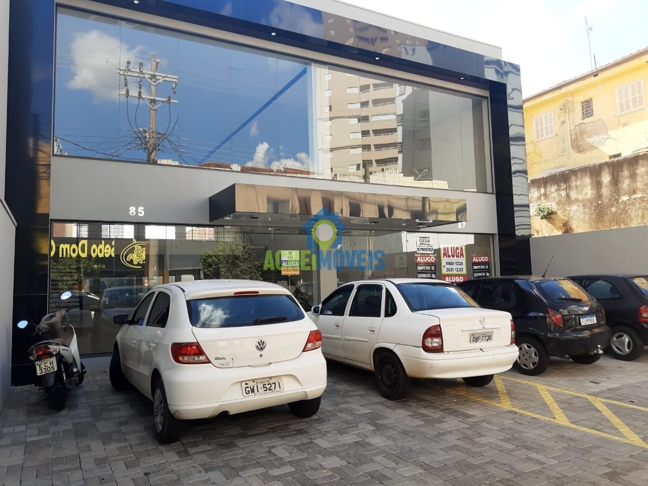 Código do Imóvel: CM1611146-6, atráves da plataforma Leads4Sales. Salão comercial com fachada de vidro, estacionamento recuado, 2 banheiros adaptados, 1 copa, 1 mezanino.