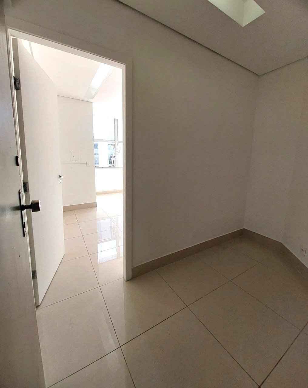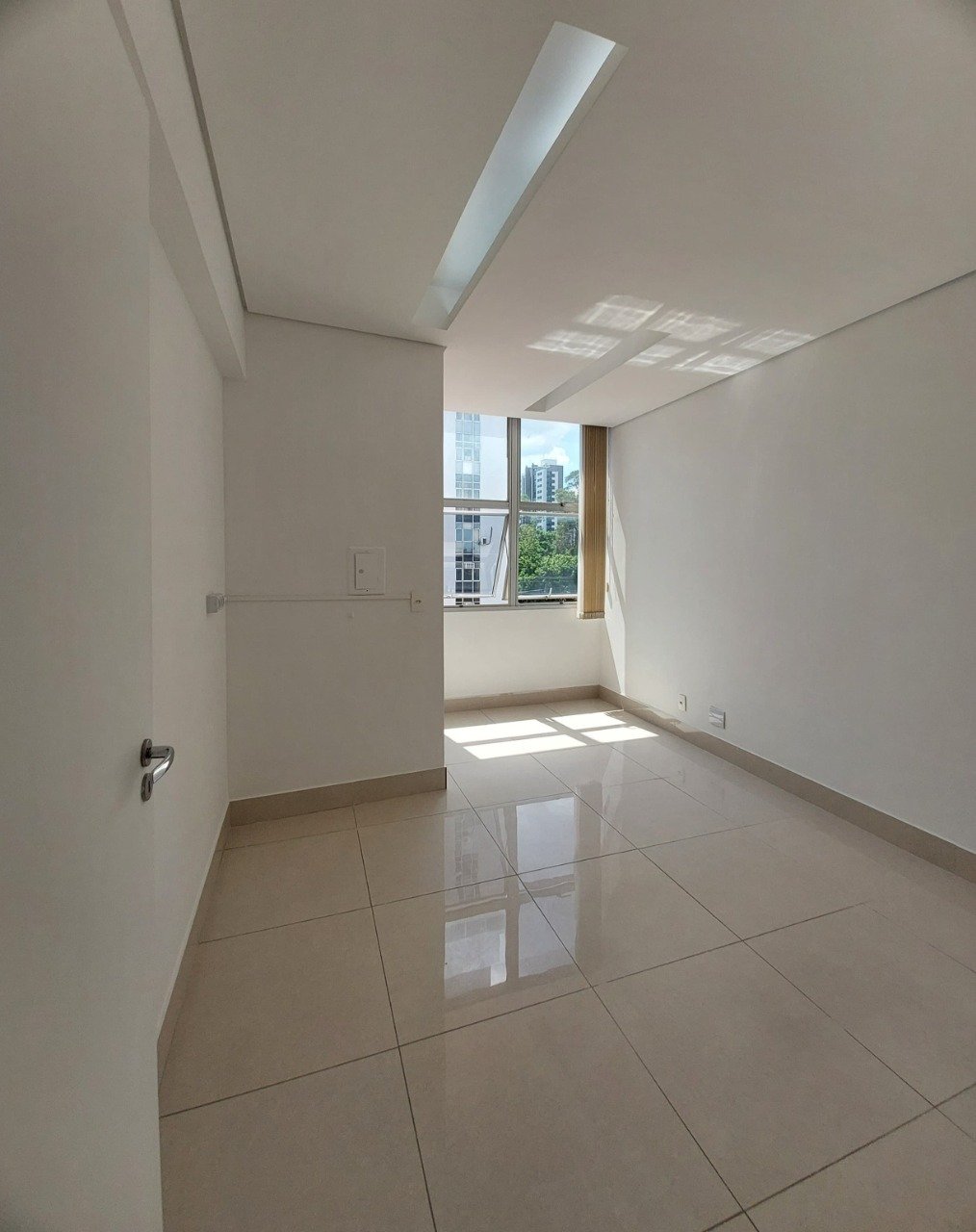 Sala e banho com aproximadamente 20m², com piso de cerâmica e luminárias. Persiana vertical bege. Interfone. Divisória formando uma saleta de espera. Prédio com 14 andares, porteiro 24h, sistema de segurança, três elevadores. Localização entre avenidas importantes.