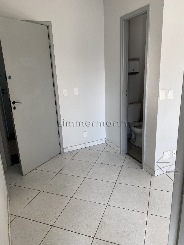 Sala comercial tem 2 banheiros e 1 vaga de garagem.
