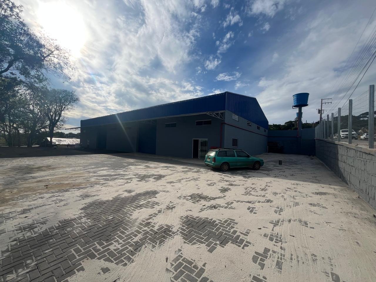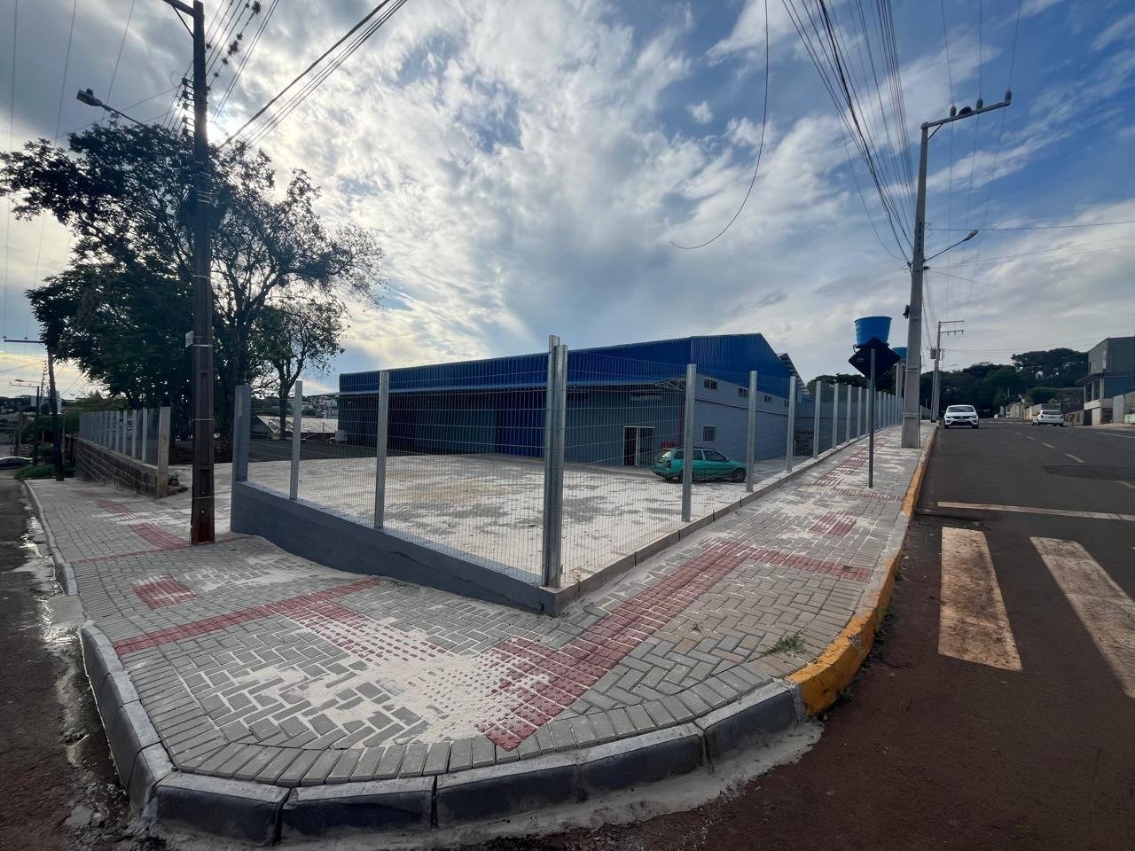 Barracão novo, de esquina com 980m² (24,5X40m) de área construída, pé direito de 8m, piso alto tráfego, energia trifásica, caixa de água com capacidade de 7.500l, 4 banheiros, em torno de 1200m² de área de estacionamento e manobra, 2 portões de elevação eletrônicos, todo cercado. Previsão de liberação para 10/11/2025.